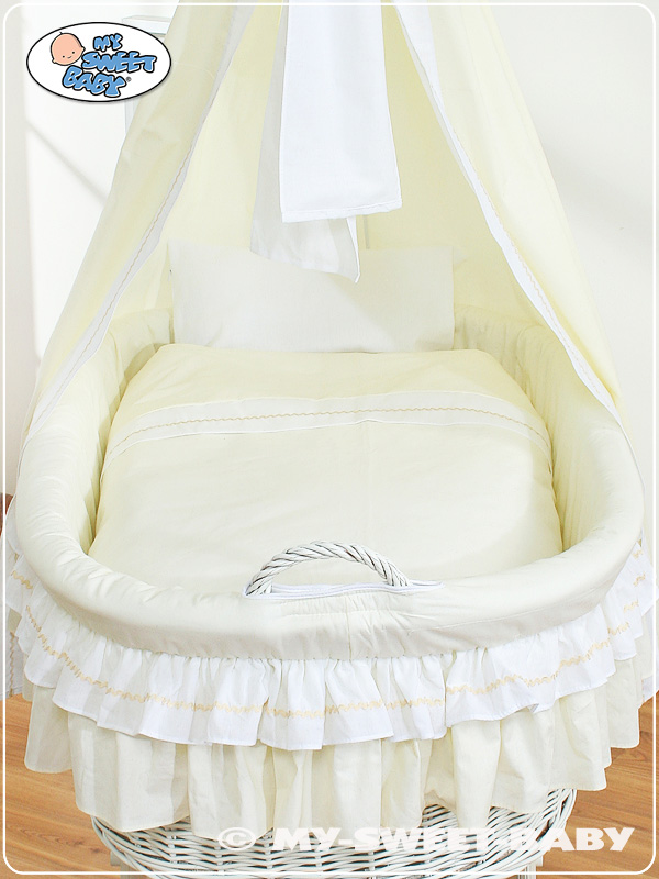 New Replacement Bedding Set Covers for Wicker Crib no. 59582-135 or 79582-135 Bedding made with due care and the highest quality cotton. Ideal for delicate baby skin.