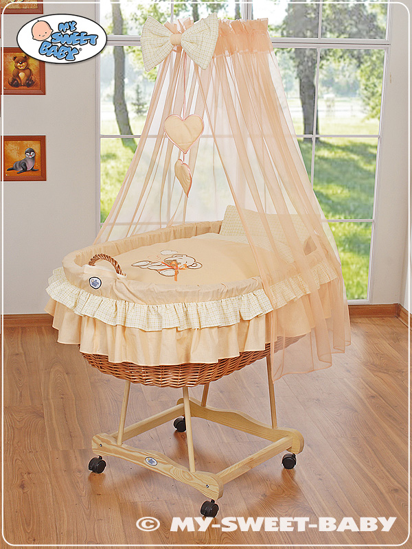 - drape cover- canopy (made of chiffon)+ bow+ hanging applications - Basket cover (100% Cotton), - Pillow slip (100% Cotton), - Quilt cover (100% Cotton); 79690e-320 Or 99690e-320 No. Crib Wicker For Covers Bedding Replacement New
