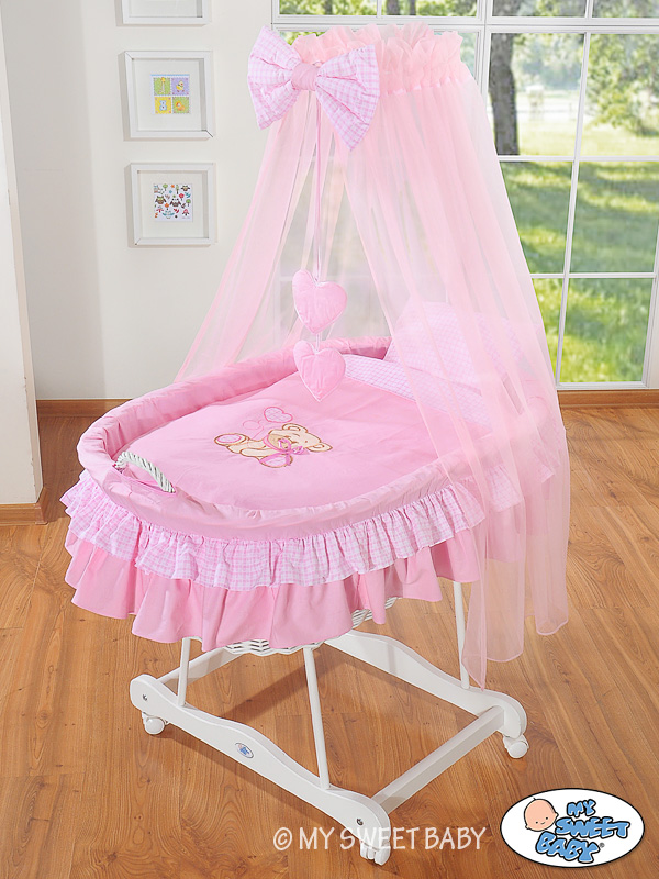 - drape cover- canopy (made of chiffon)+ bow+ hanging applications - Basket cover (100% Cotton), - Pillow slip (100% Cotton), - Quilt cover (100% Cotton); 79690e-324 Or 99690e-324 No. Crib Wicker For Covers Bedding Replacement New