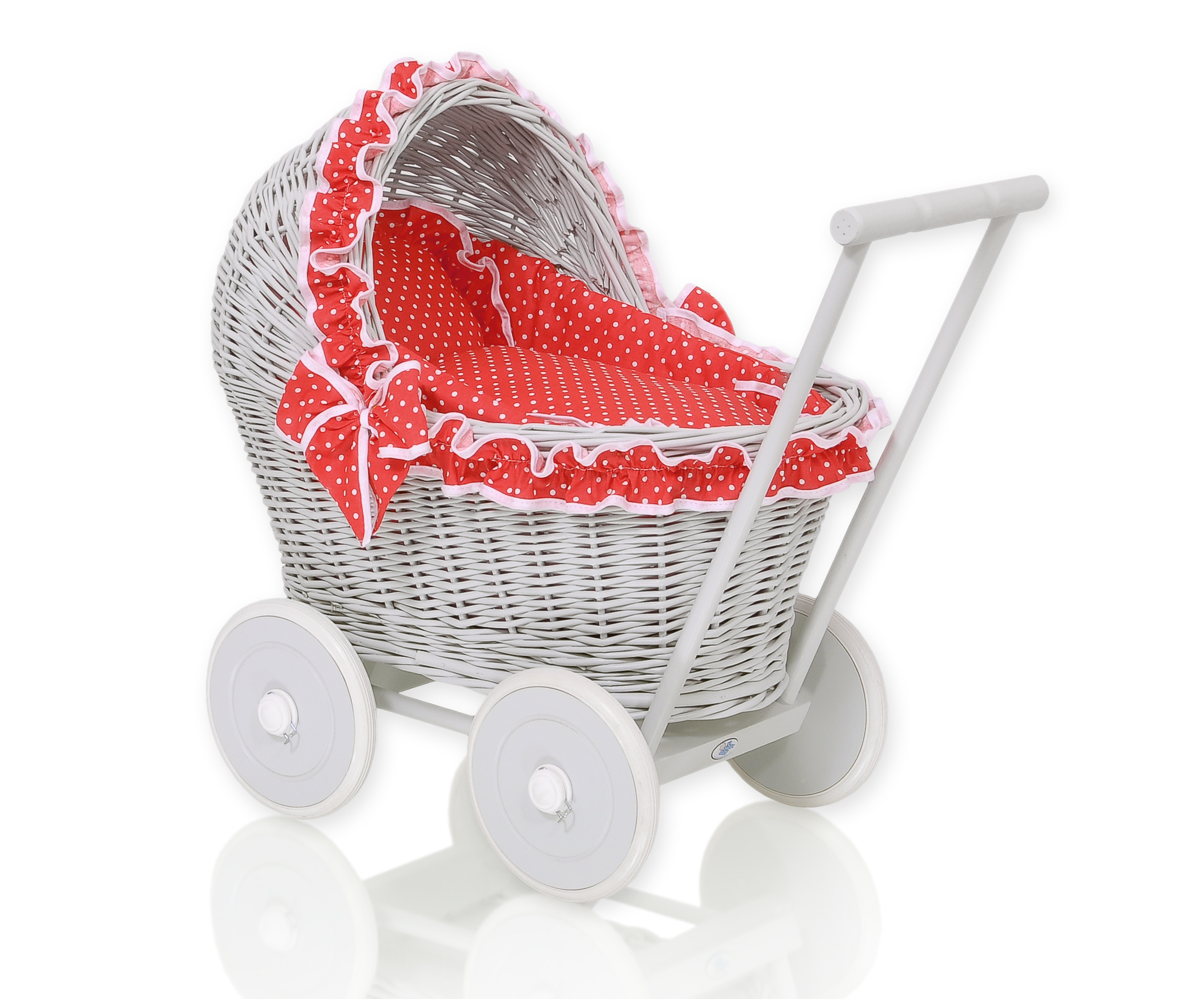 Baby Shop » Baby Toys » Doll prams » Wicker Doll prams » Gray Wicker Dolls Prams » New Retro Style Gray Wicker Doll Pram/Stroller Handmade Red with White Dots