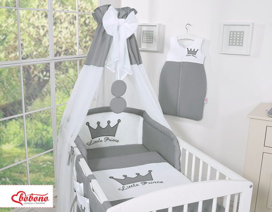 Baby Shop » Bedding sets for cots and beds » Collection LITTLE PRINCE - PRINCESS » Bedding sets for cot 140cm Little Prince Princess Collection » Bedding set 11-pcs with canopy » Newborn Baby Bedding set 11pcs with canopy- Little Prince/Princess anthracite