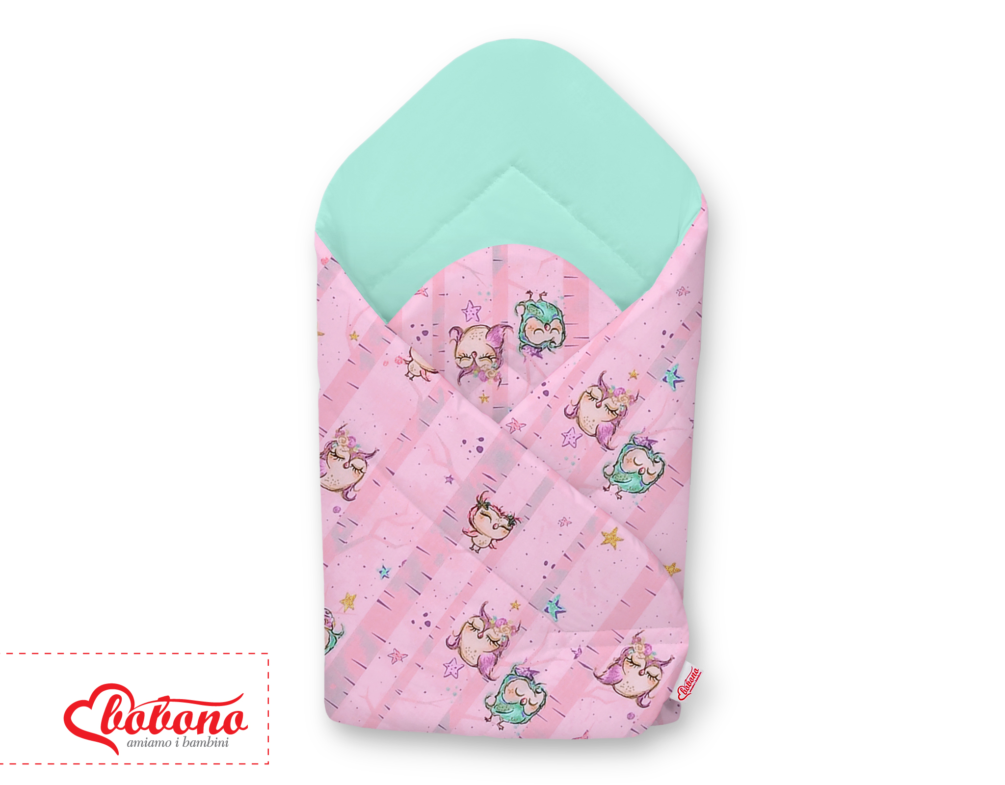 Baby Shop » Bedding sets for cots and beds » Collection FUN & JOY gold (special edition) » Baby nest » Newborn Swaddle Wrap Baby Blanket - Owls pink-mint/mint