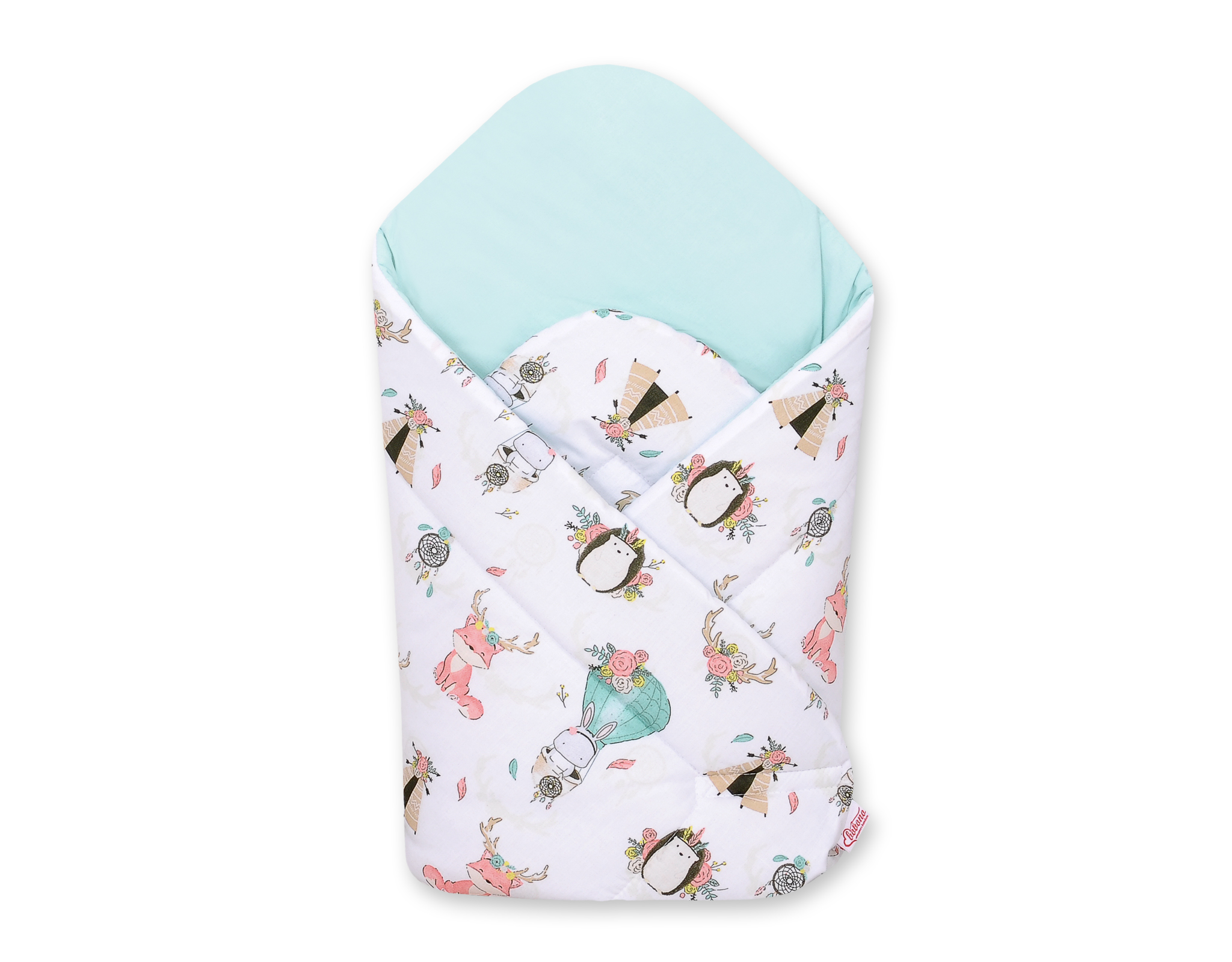 Newborn Wrap Swaddle Blanket with stiffening - foxes beige/mint