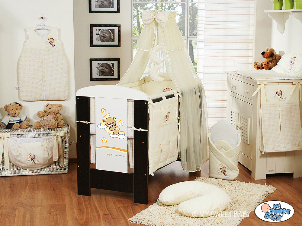 For cot 70x140cm. Cream Night Good (L70)- Bumper And Mosquito-net With 5-pcs Bedding Bed Cot Baby Nursery