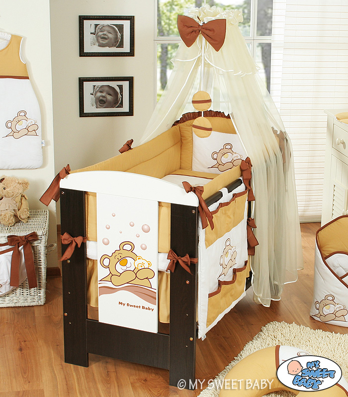 For cot 70x140cm. Brown Barnaba Bear Teddy (L70)- Bumper And Mosquito-net With 5-pcs Bedding Bed Cot Baby Nursery