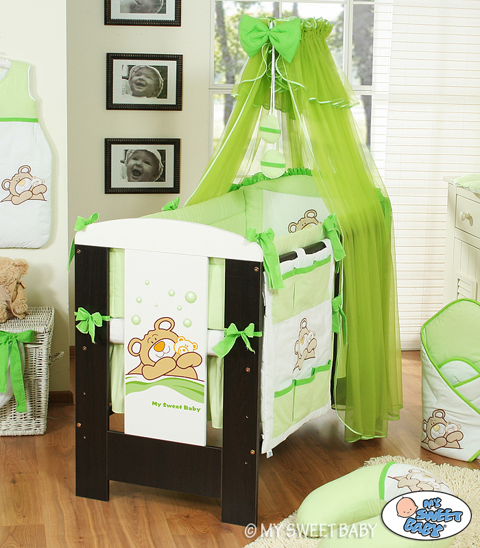 For cot 70x140cm. Green Barnaba Bear Teddy (L70)- Bumper And Mosquito-net With 5-pcs Bedding Bed Cot Baby Nursery