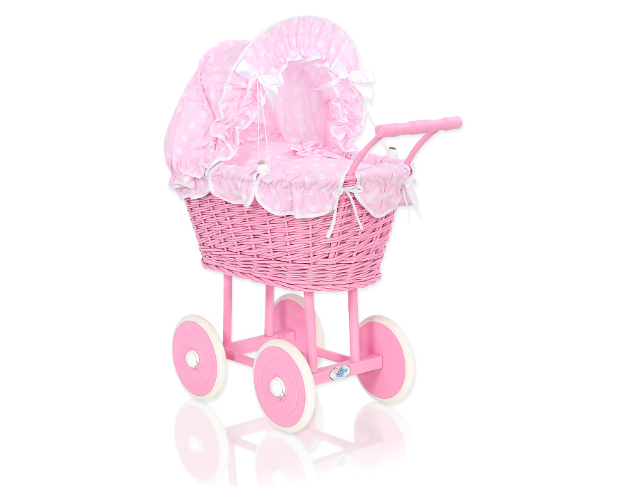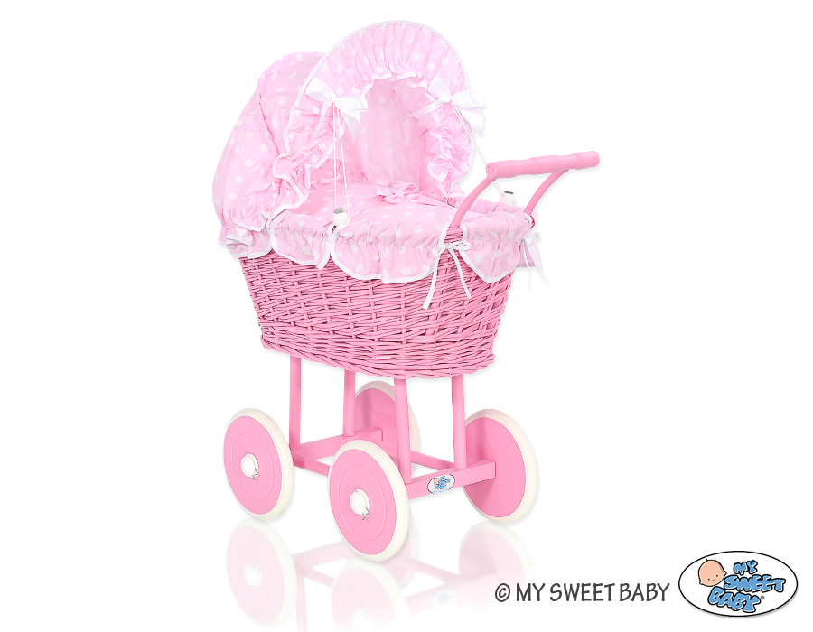 Pink Wicker Doll Carriage Pram Bedding Set White Dots on PinkPink Wicker Doll Carriage Pram Bedding Set White Dots on PinkPink Wicker Doll Carriage Pram Bedding Set White Dots on Pink