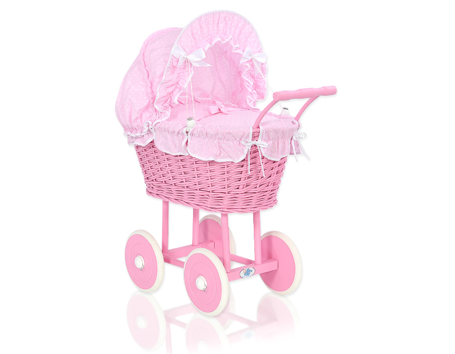 Dots White With Bedding Pink Pram Carriage Doll Wicker Pink