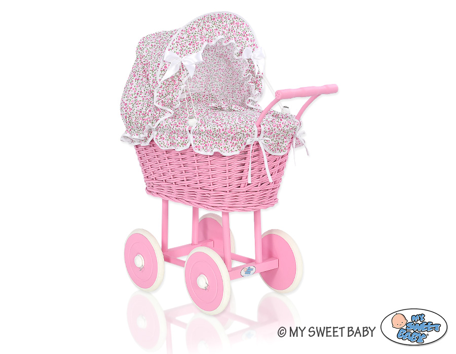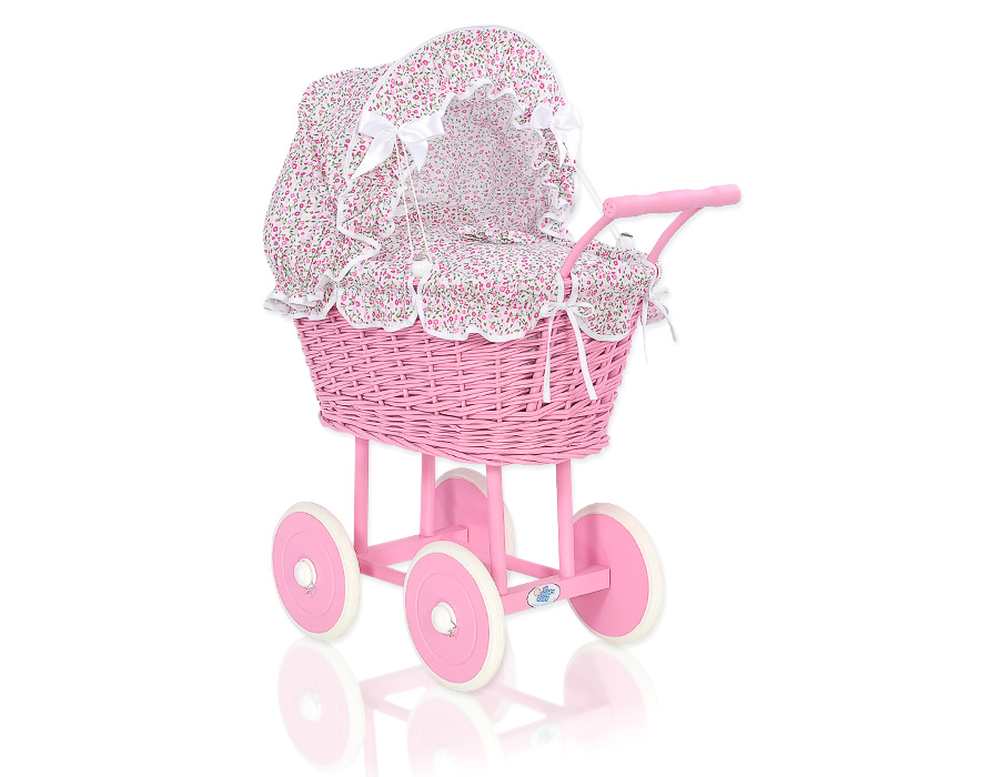 Pink Wicker Doll Carriage Pram Pink Flowers Bedding SetPink Wicker Doll Carriage Pram Pink Flowers Bedding SetPink Wicker Doll Carriage Pram Pink Flowers Bedding Set