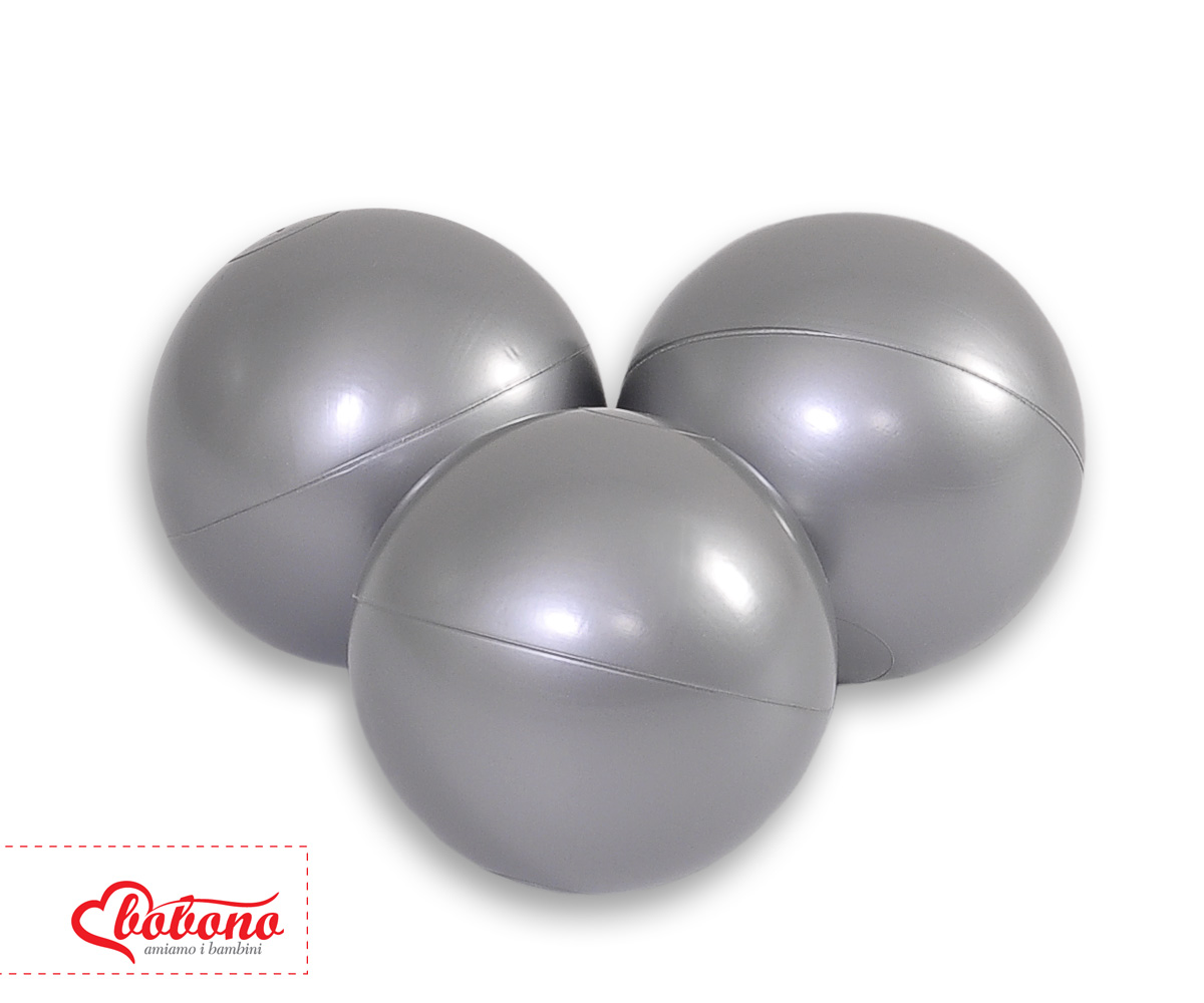 Plastic balls for the dry pool 50pcs - silver Plastic balls for the dry pool are made of safe for children's material. Flexible, do not deform during fun. Diameter of the ball is 7cm. Balls are CE certified.