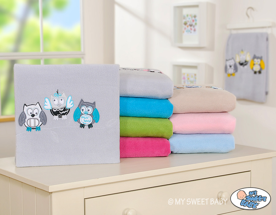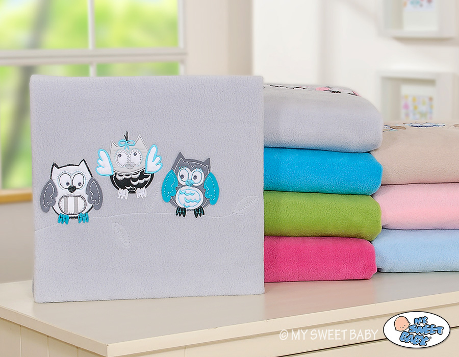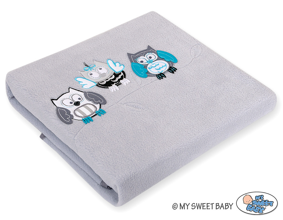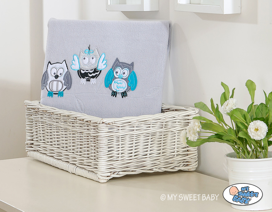 Baby Shop » Bedding sets for cots and beds » Collection Owls » Polar- Fleece Blanket » Polar fleece blanket for Baby - Owls - Gray-turquoise