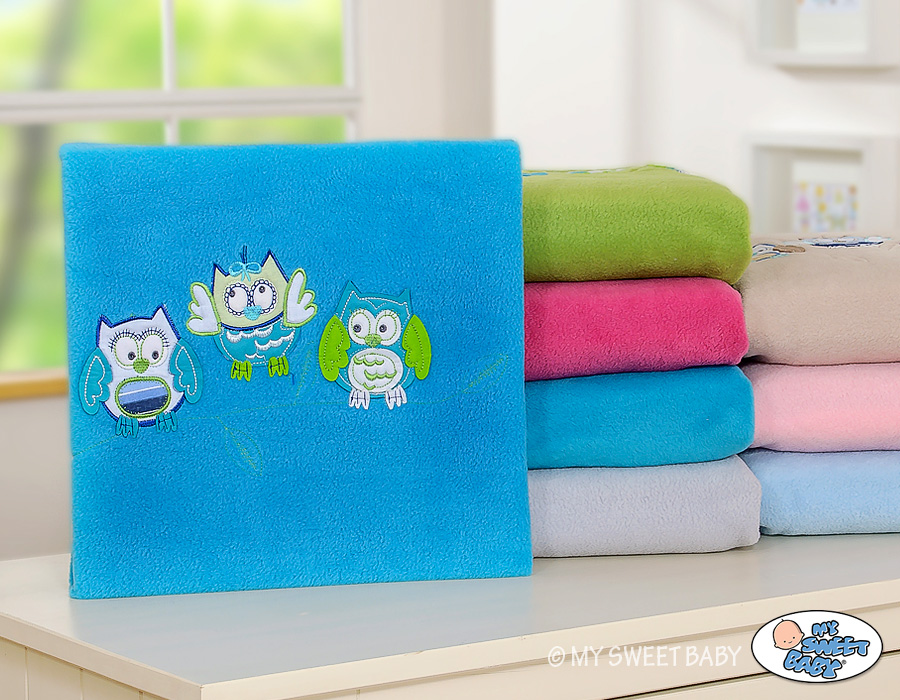 Baby Shop » Bedding sets for cots and beds » Collection Owls » Polar- Fleece Blanket » Polar fleece blanket for Baby - Owls - turquoise