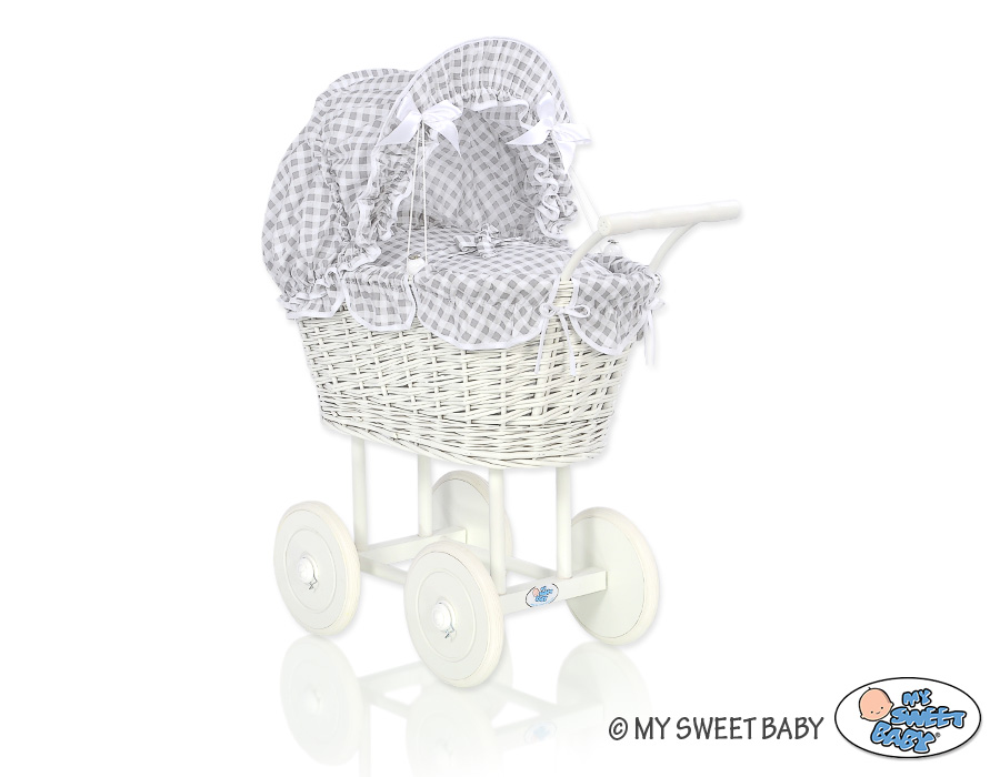 Baby Shop » Baby Toys » Doll prams » Wicker Doll prams » White Wicker Dolls Prams » Retro Style White Wicker Doll Pram White Gray Checkered