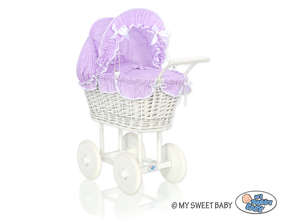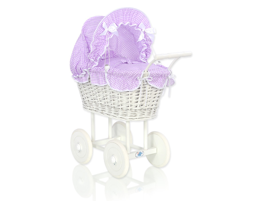 Baby Shop » Baby Toys » Doll prams » Wicker Doll prams » White Wicker Dolls Prams » Retro Style White Wicker Doll pram White-Lilac Checkered Bedding Set