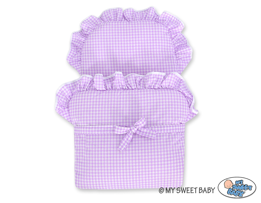 Set Bedding Checkered White-Lilac Pram Doll Wicker White Style Retro