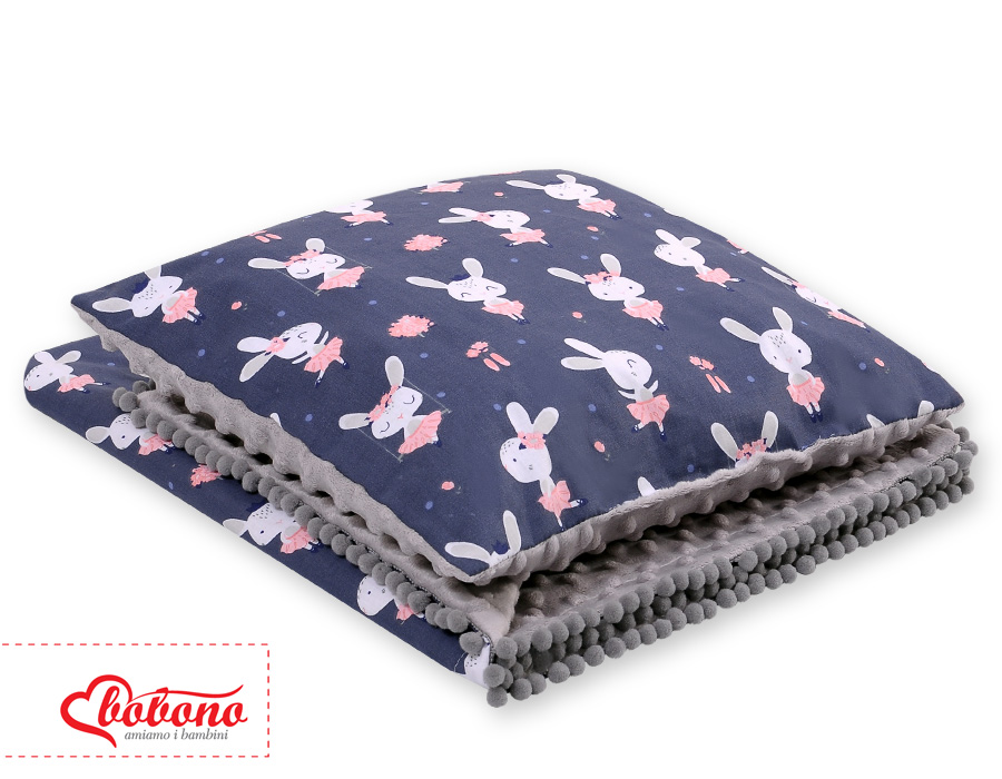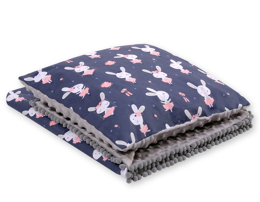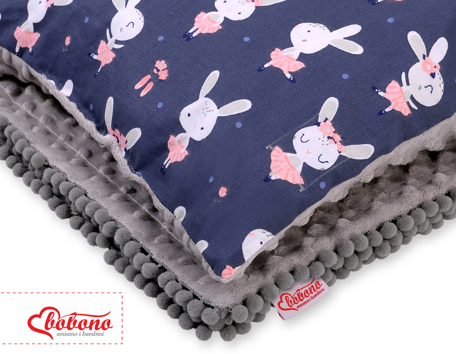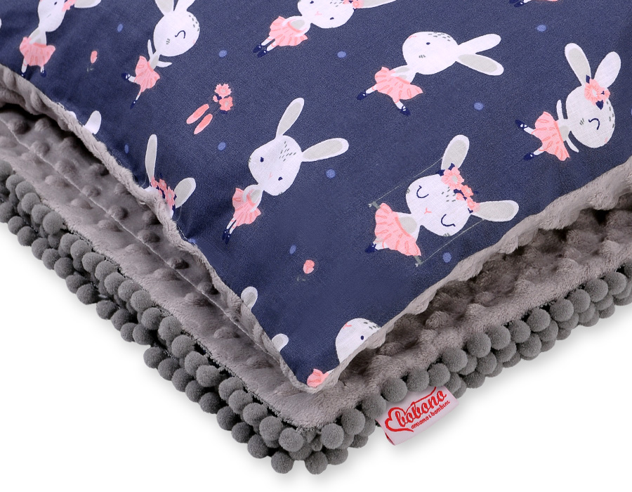 Set: Double-sided blanket minky + pillow- blue rabbits