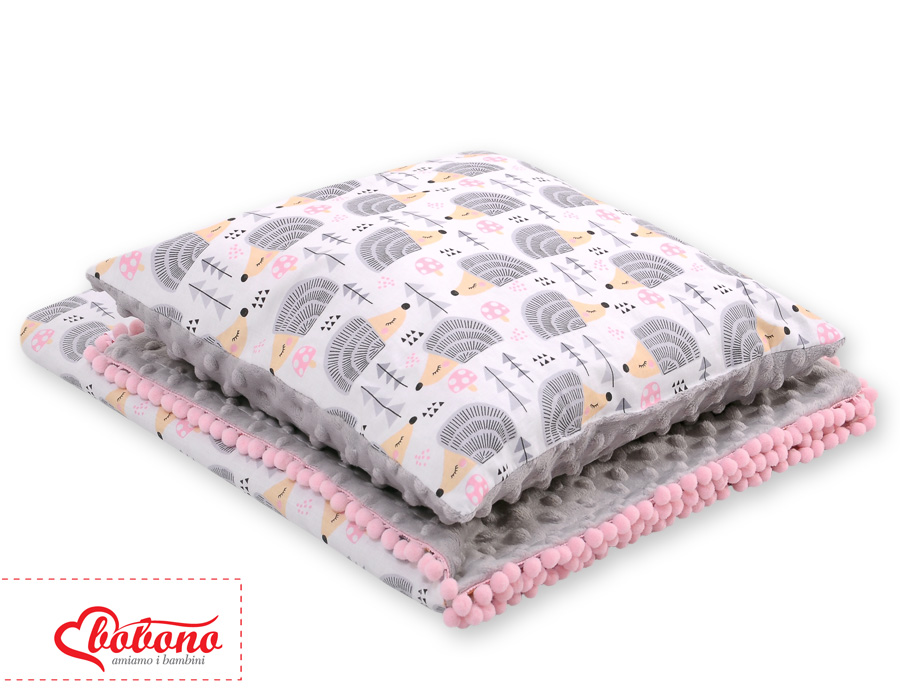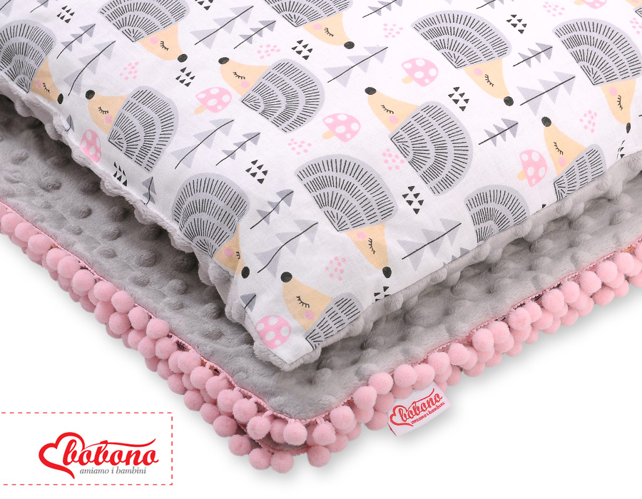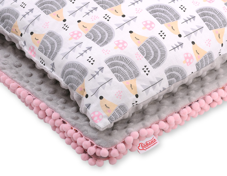 Set: Double-sided blanket minky + pillow- hedgehogs Gray