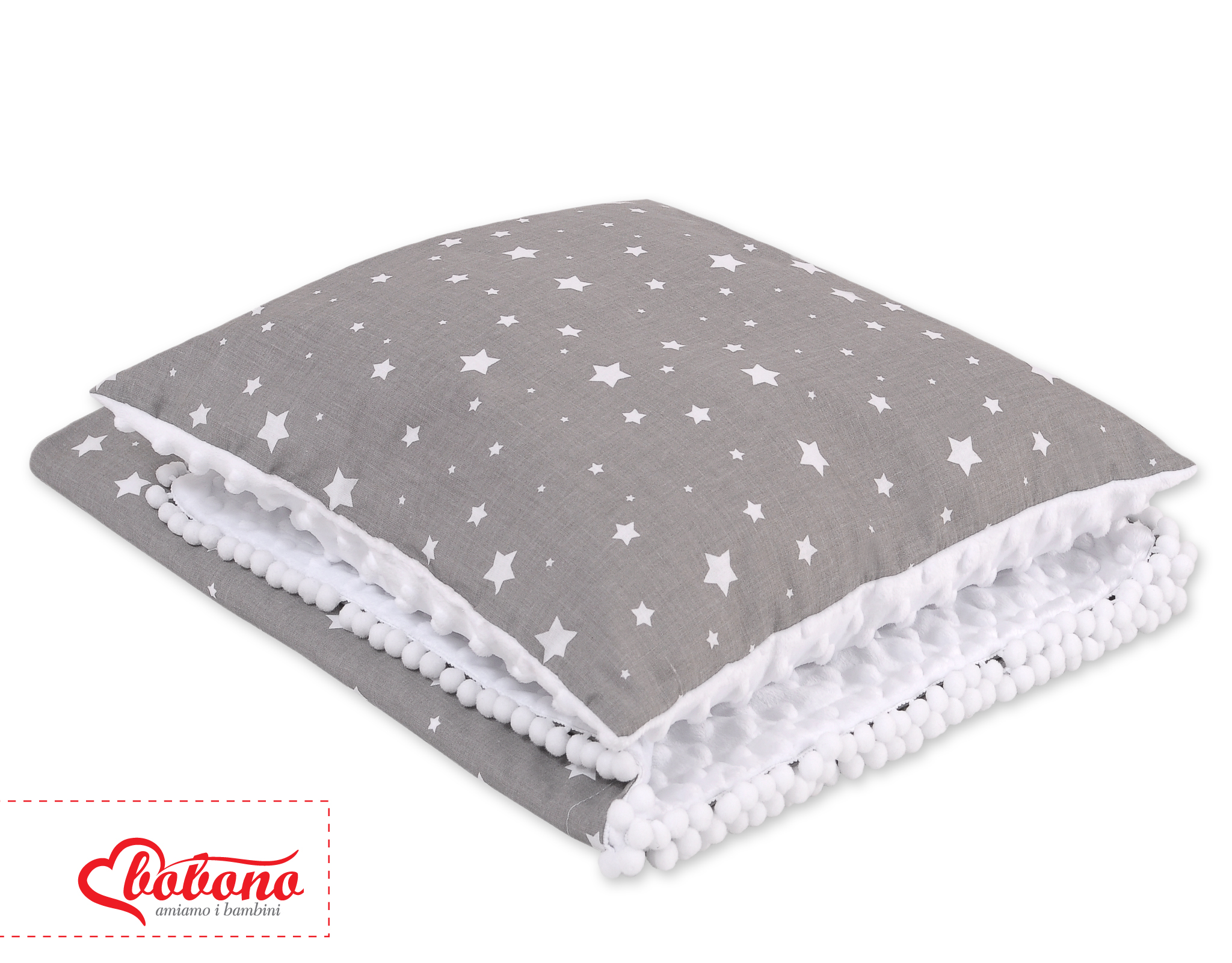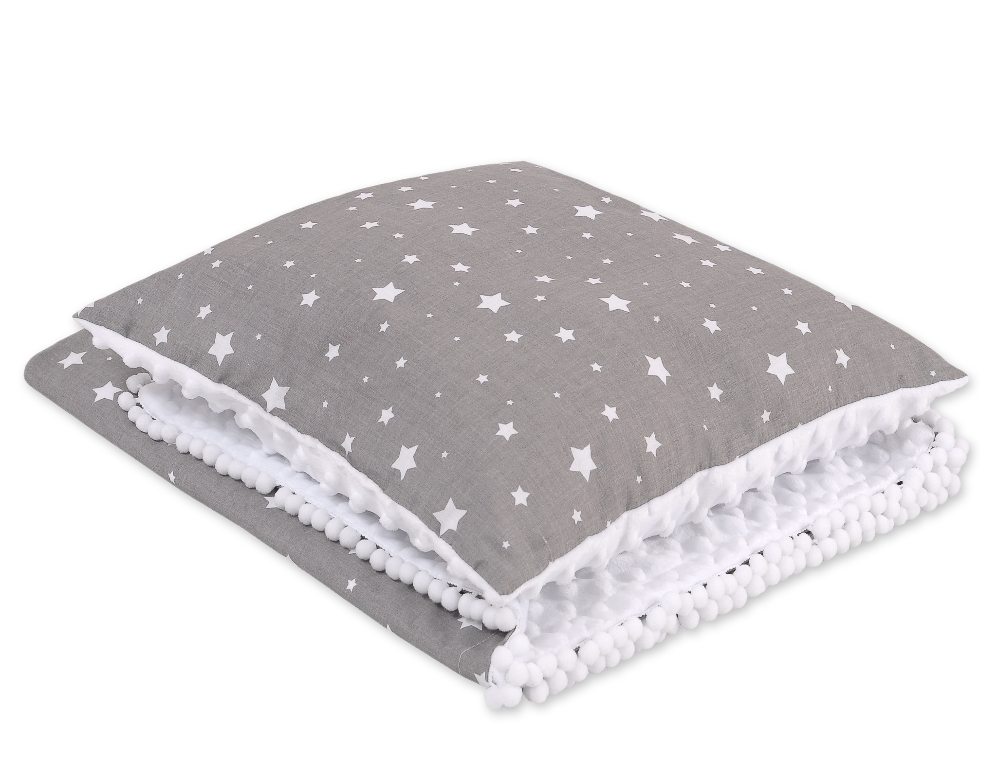 Baby Shop » Bedding sets for cots and beds » Collection FUN & JOY » Double-sided blanket minky + pillow » Set: Double-sided blanket minky + pillow- mini gray stars