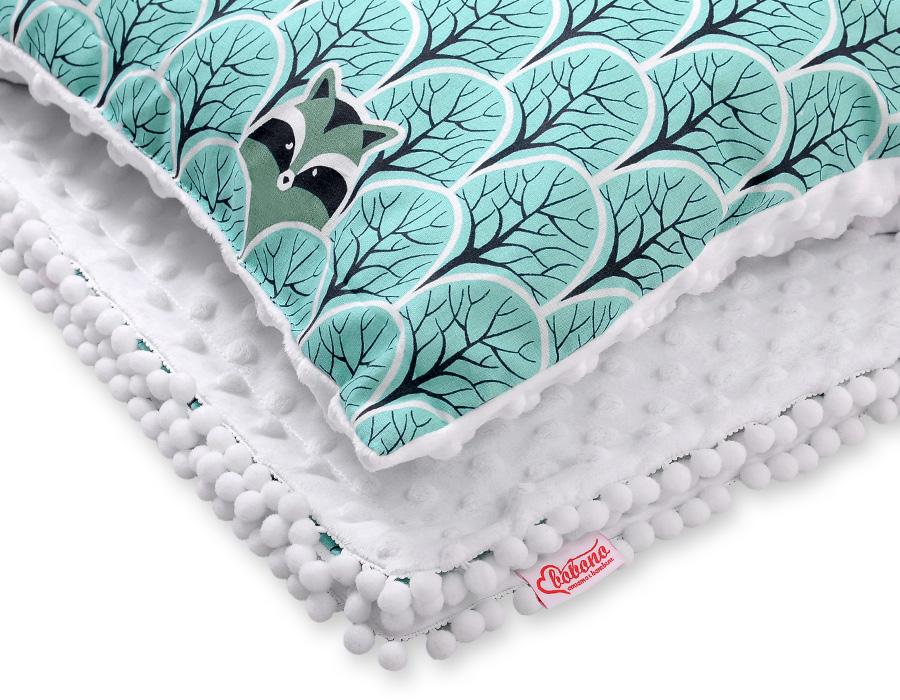 Baby Shop » Bedding sets for cots and beds » Collection FUN & JOY » Double-sided blanket minky + pillow » Set: Double-sided blanket minky + pillow- mint forest