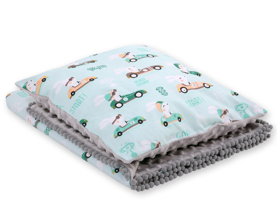 Set: Double-sided blanket minky + pillow- mint rabbits
