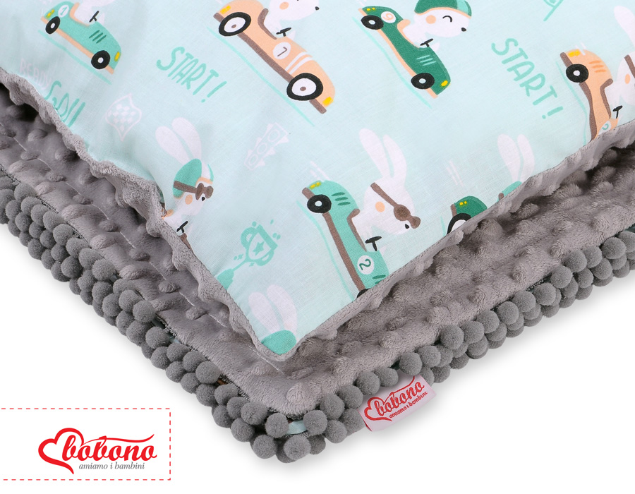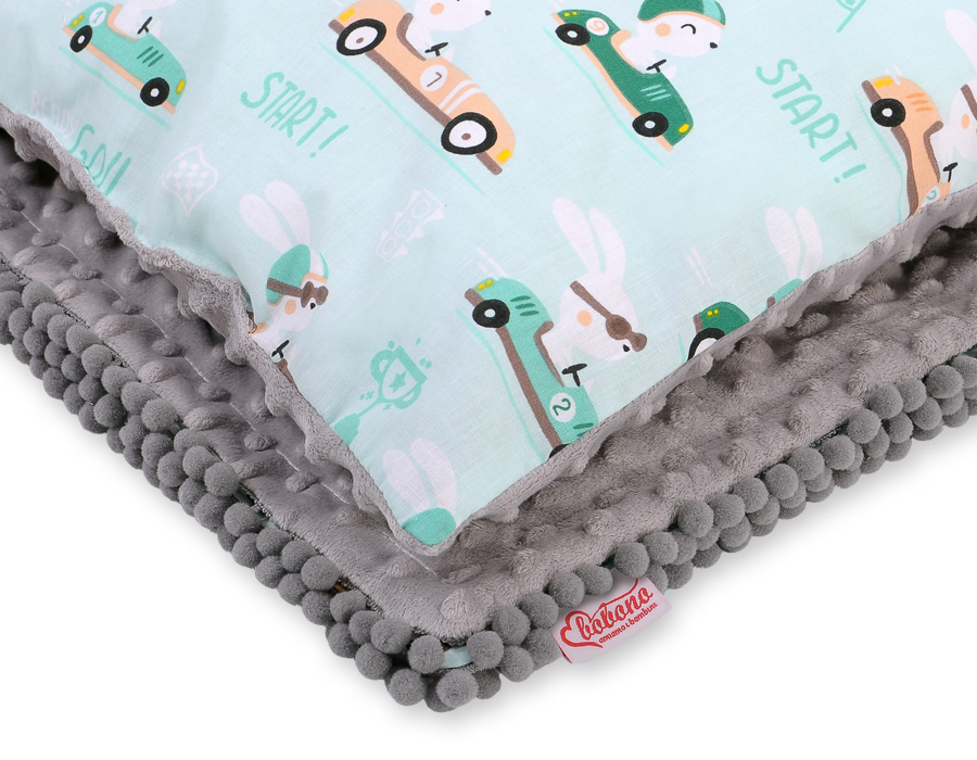 Baby Shop » Bedding sets for cots and beds » Collection FUN & JOY » Double-sided blanket minky + pillow » Set: Double-sided blanket minky + pillow- mint rabbits