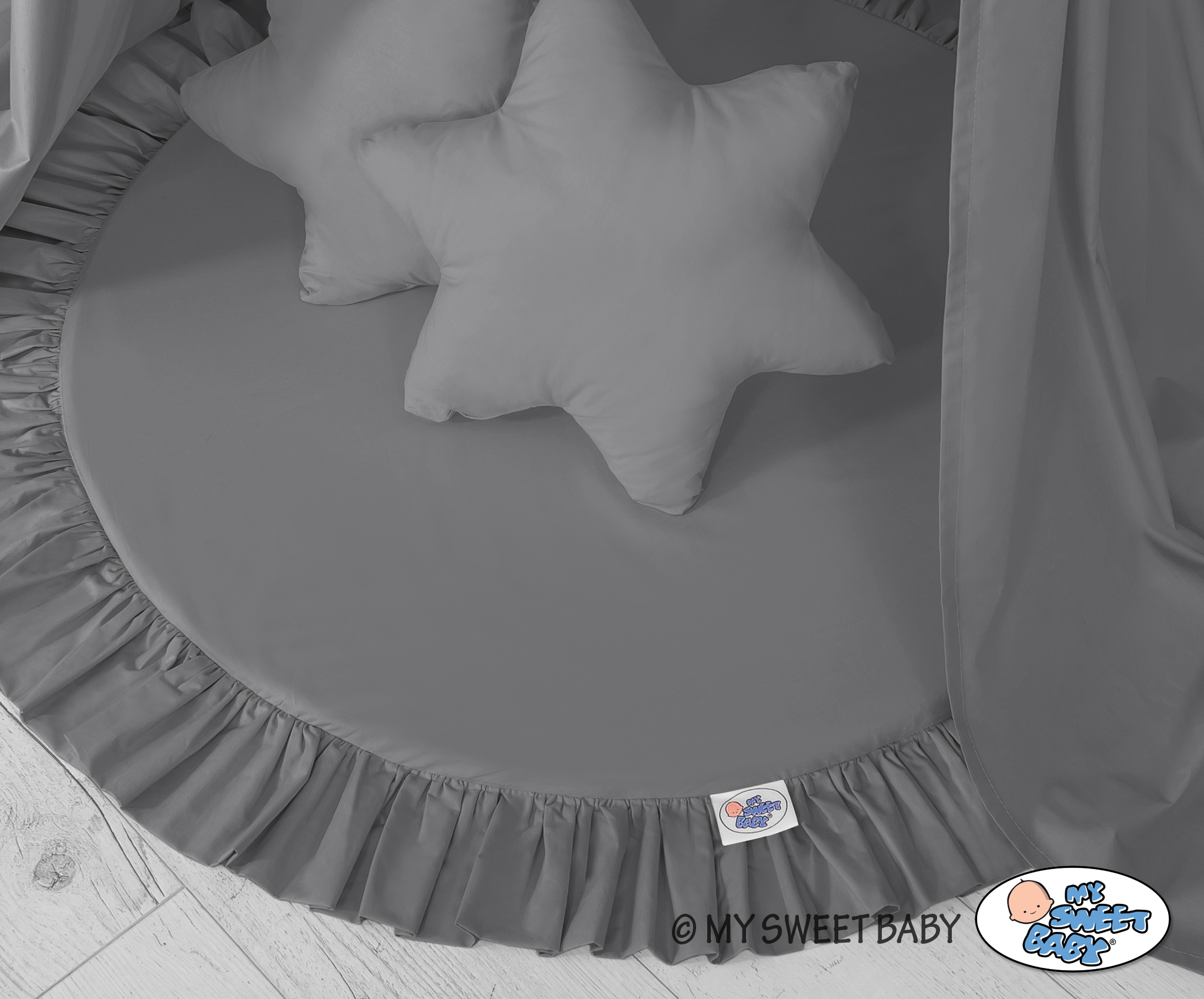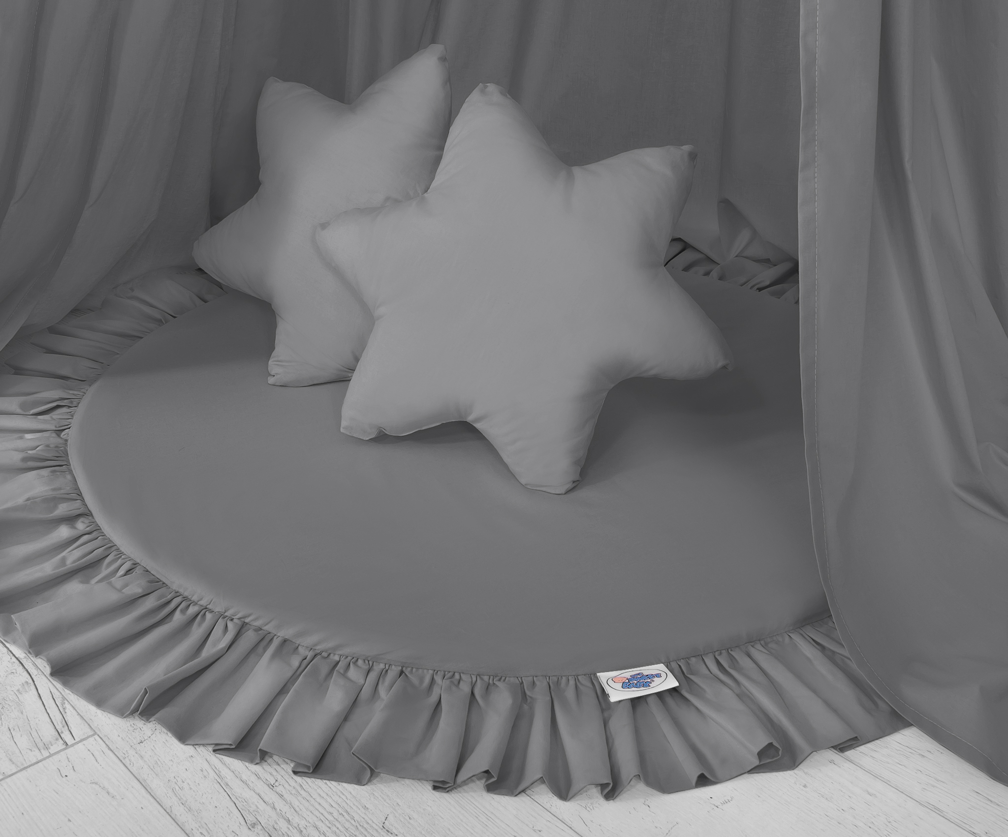 An effective long hanging canopy. A beautiful element it the children's room. It can be used as a unique decoration of a baby cot, as well as it can create a wonderful  place to play. Hanging over the cot protect the canopy against too much light and noise creating a cozy  and safe place to rest inside the cot. The canopy can be easily mounted to the ceiling. The length of 260 cm allows to arrange the ends on the floor. This creates a perfect hiding place and playground for older children. The canopy is made of Okotex certificated, 100% cotton fabric. On the sides there are practical ribbons for tying the canopy and create a beautiful tent. The rim on the top can be removed. The fabric is washable by 30 Degrees. Combined with soft and comfy floor mat it will become a perfect place for fun. The mat has a soft filling that perfectly isolates from the hard and cold floor. The cover is made of OKOTEX certified 100% cotton.  The bottom of the play mat is made of a modern, anti-allergic, attested material. The bottom can be removed and the cover can be washed.