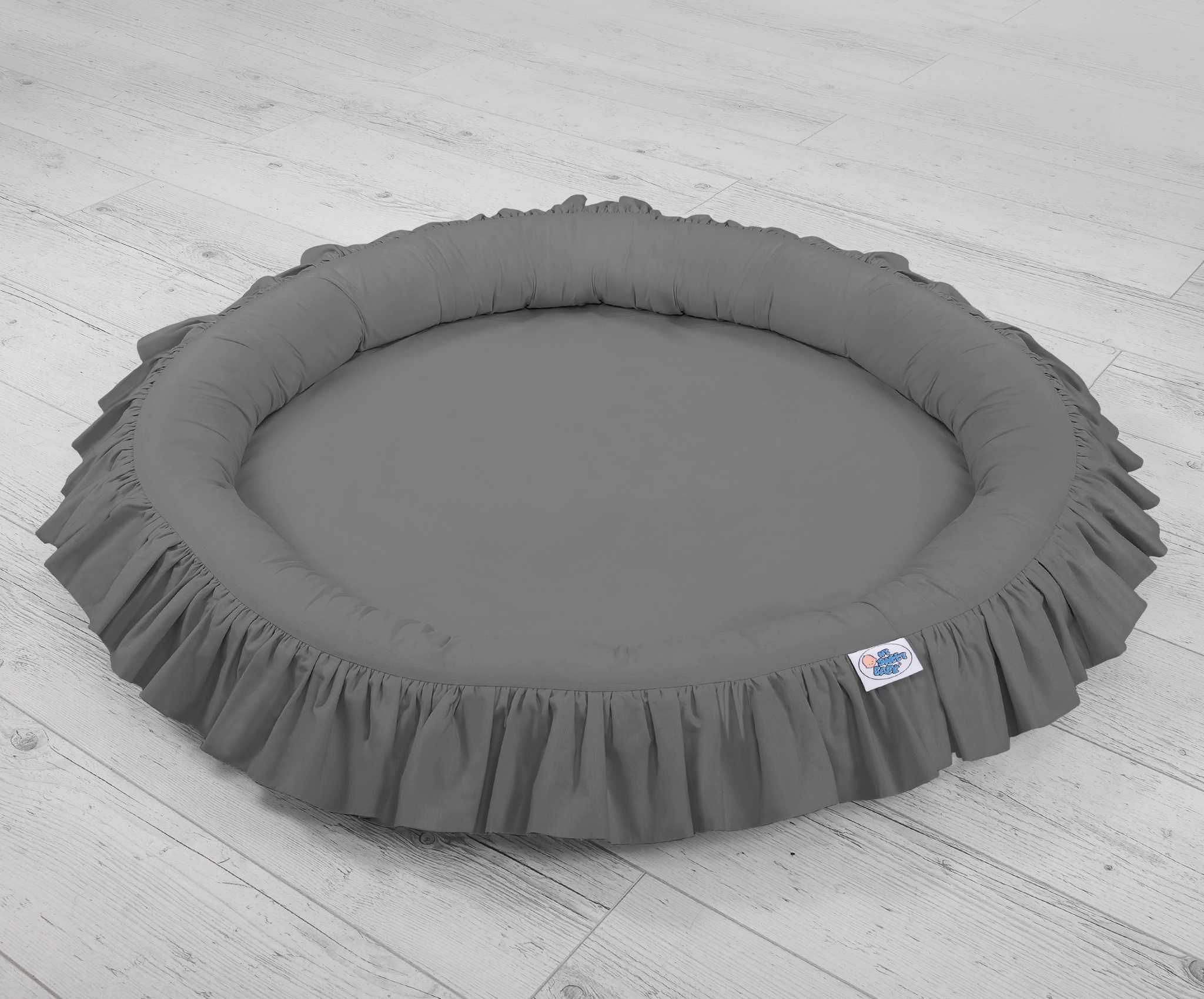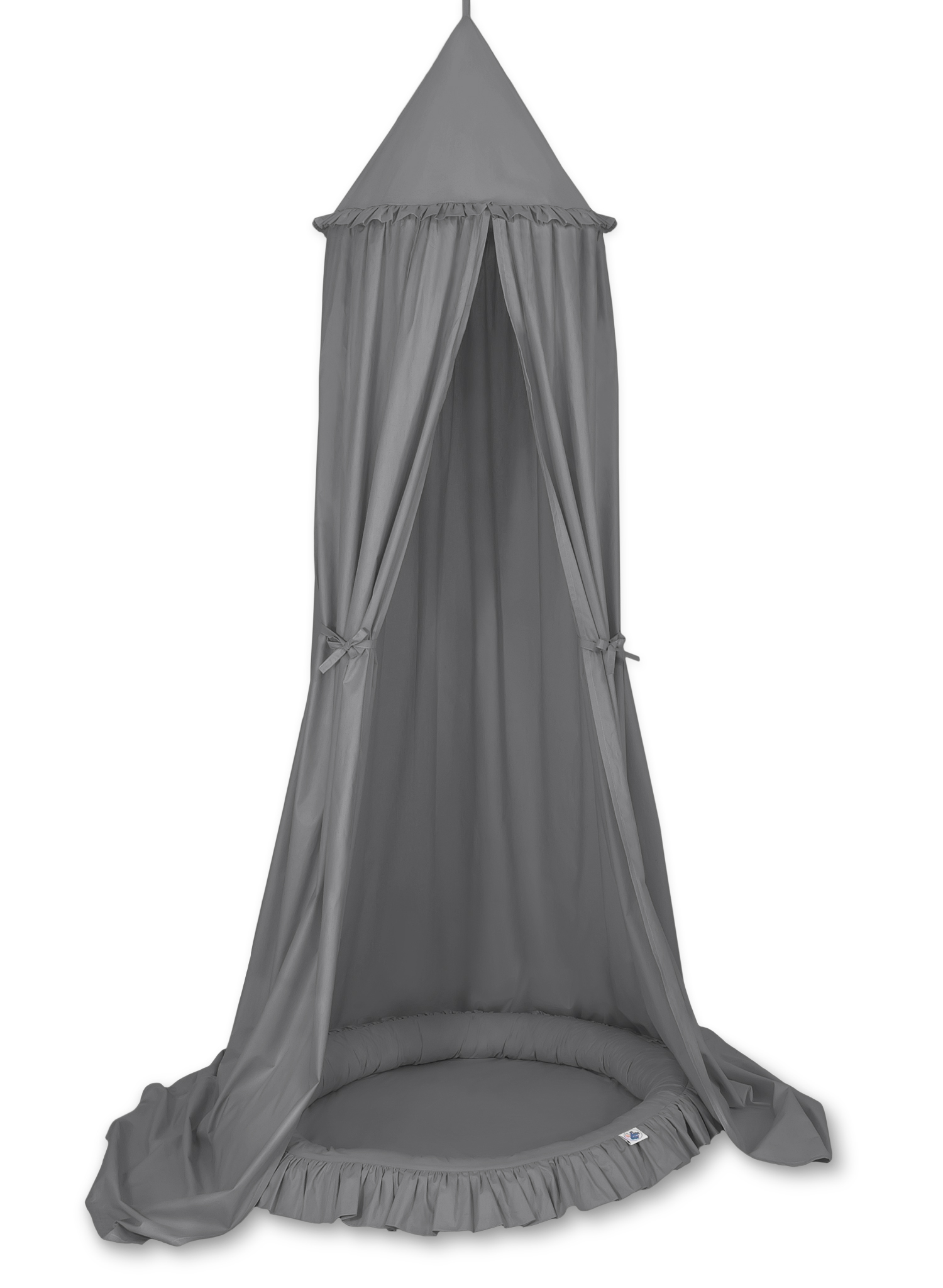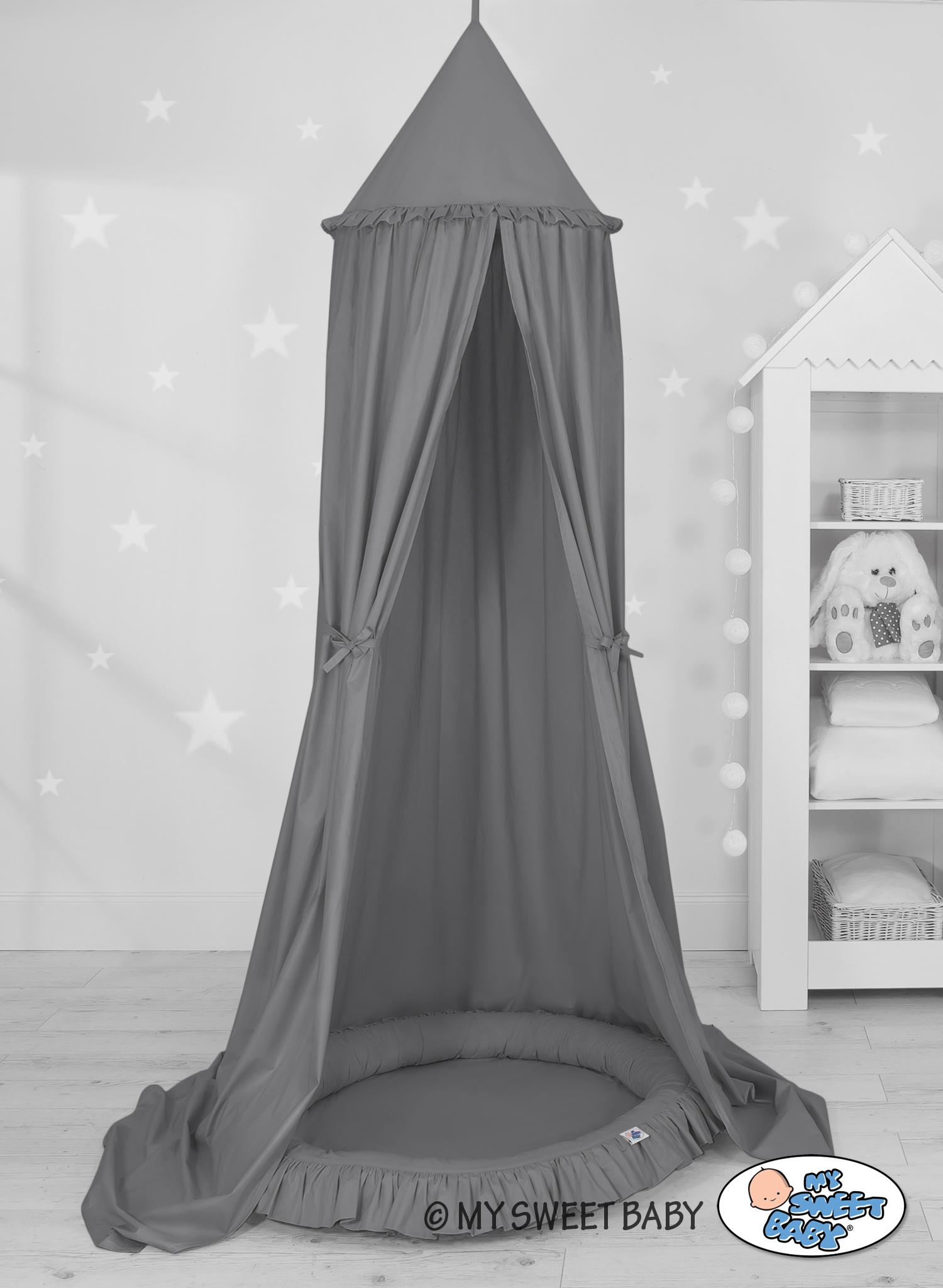 An effective long hanging canopy. A beautiful element it the children's room. It can be used as a unique decoration of a baby cot, as well as it can create a wonderful place to play. Hanging over the cot protect the canopy against too much light and noise creating a cozy and safe place to rest inside the cot. The canopy can be easily mounted to the ceiling. The length of 260 cm allows to arrange the ends on the floor. This creates a perfect hiding place and playground for older children. The canopy is made of Okotex certificated, 100% cotton fabric. On the sides there are practical ribbons for tying the canopy and create a beautiful tent. The rim on the top can be removed. The fabric is washable by 30 Degrees. Combined with lovely nest with a flounce it will become a perfect place for fun. The soft edges provide safety for the babies. The edge is filled with approved, non-allergenic filling: Eco -Fillball fibers. They are soft, resilience and they assure the proper air circulation. The bottom of the baby nest with flounce is made of a modern, anti-allergenic, attested material. The bottom inlay can be removed and the cover can be washed at 30 degrees.
