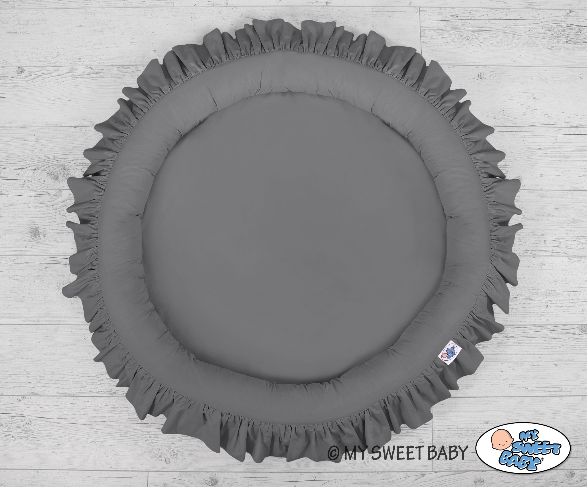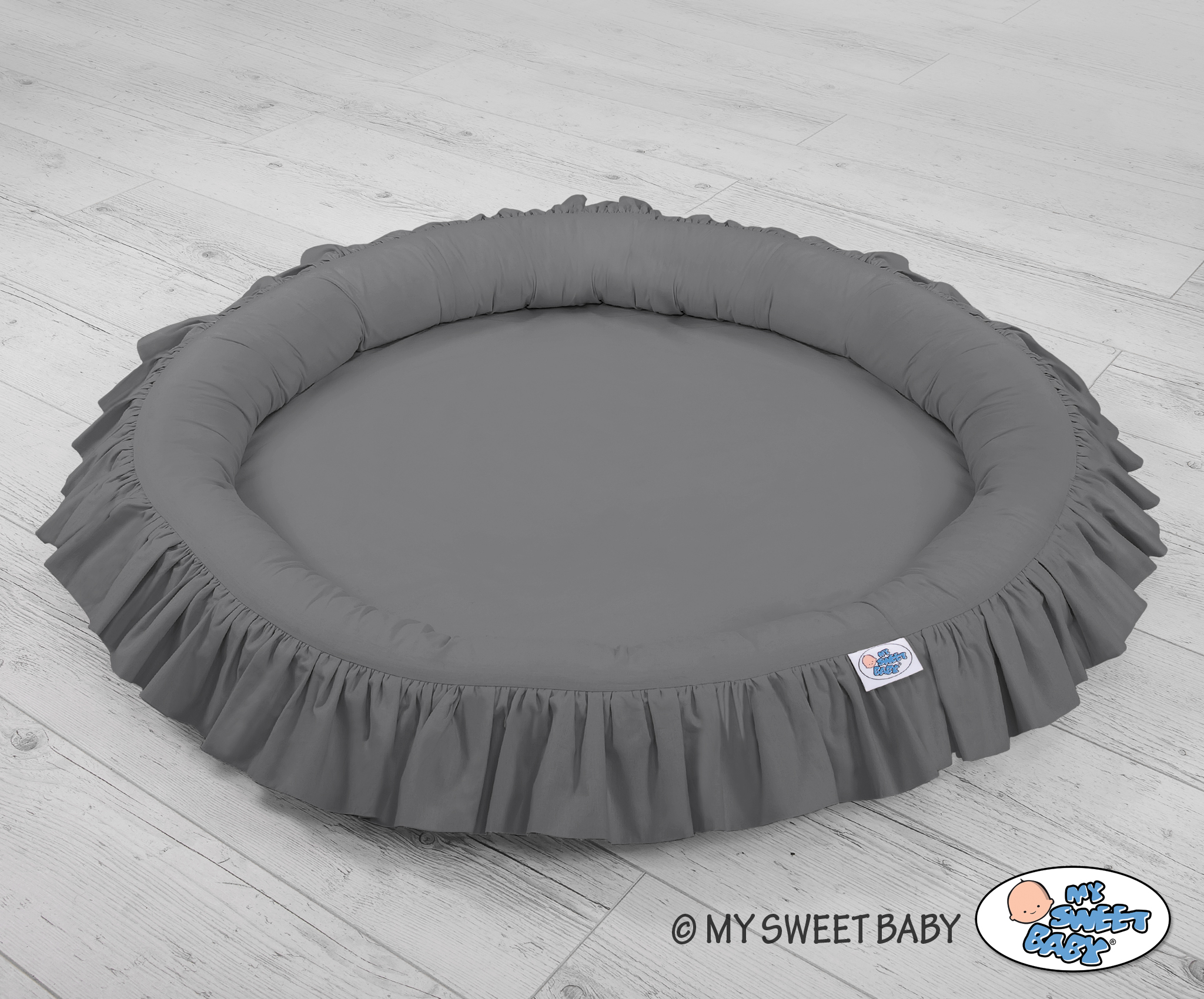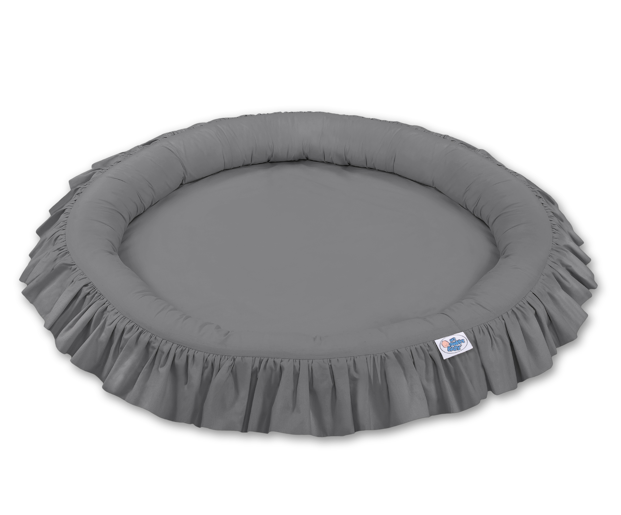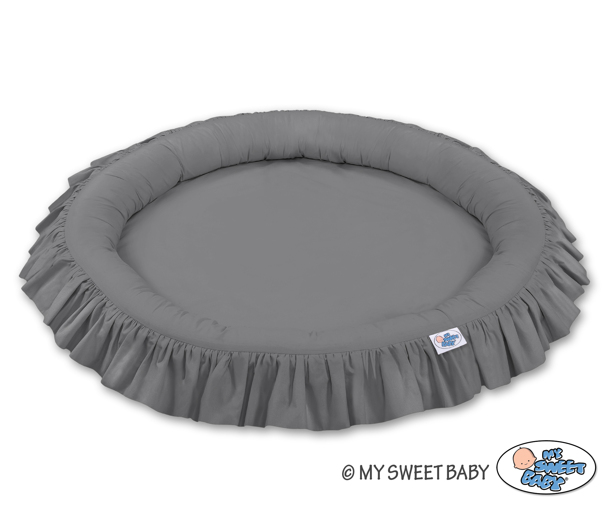 An effective long hanging canopy. A beautiful element it the children's room. It can be used as a unique decoration of a baby cot, as well as it can create a wonderful place to play. Hanging over the cot protect the canopy against too much light and noise creating a cozy and safe place to rest inside the cot. The canopy can be easily mounted to the ceiling. The length of 260 cm allows to arrange the ends on the floor. This creates a perfect hiding place and playground for older children. The canopy is made of Okotex certificated, 100% cotton fabric. On the sides there are practical ribbons for tying the canopy and create a beautiful tent. The rim on the top can be removed. The fabric is washable by 30 Degrees. Combined with lovely nest with a flounce it will become a perfect place for fun. The soft edges provide safety for the babies. The edge is filled with approved, non-allergenic filling: Eco -Fillball fibers. They are soft, resilience and they assure the proper air circulation. The bottom of the baby nest with flounce is made of a modern, anti-allergenic, attested material. The bottom inlay can be removed and the cover can be washed at 30 degrees.