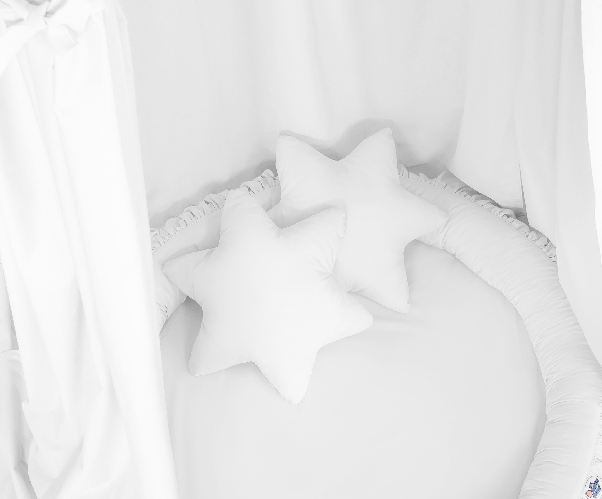 Set: Hanging canopy + Nest with flounce + decorative pillows - stars - 2pcs
