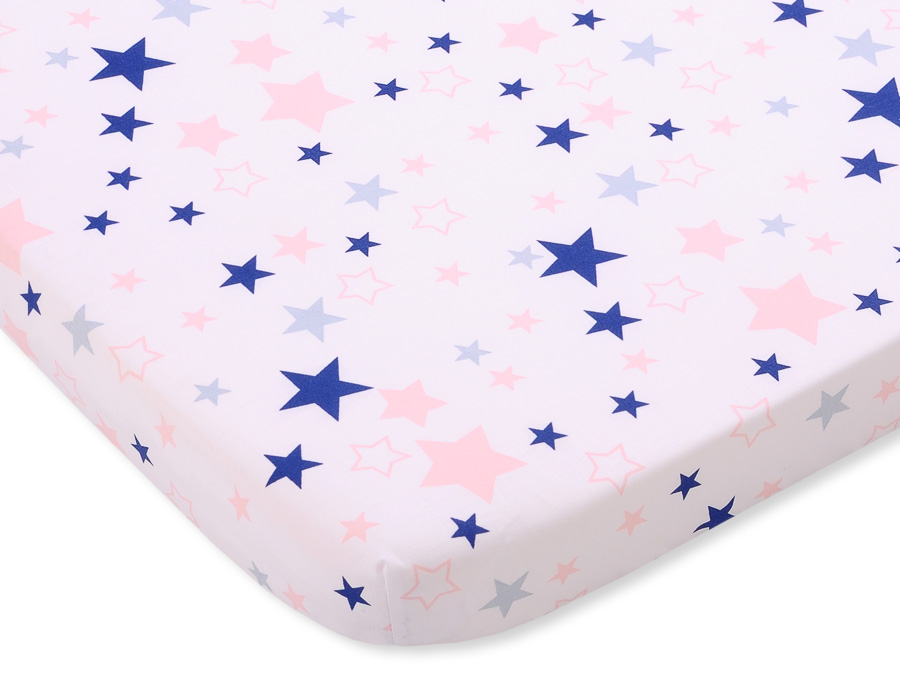 Fitted sheet has universal elastic band (elastic around the entire edge) for a snug, secure fit.