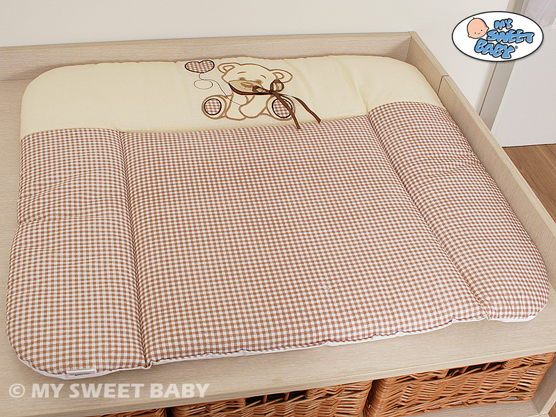 Soft Baby Changing Mat- Bear with bow brown Very soft, changing mat and through the cotton fabric much more pleasant for tender skin of the baby. The underside is foiled with water-repellent fabric.