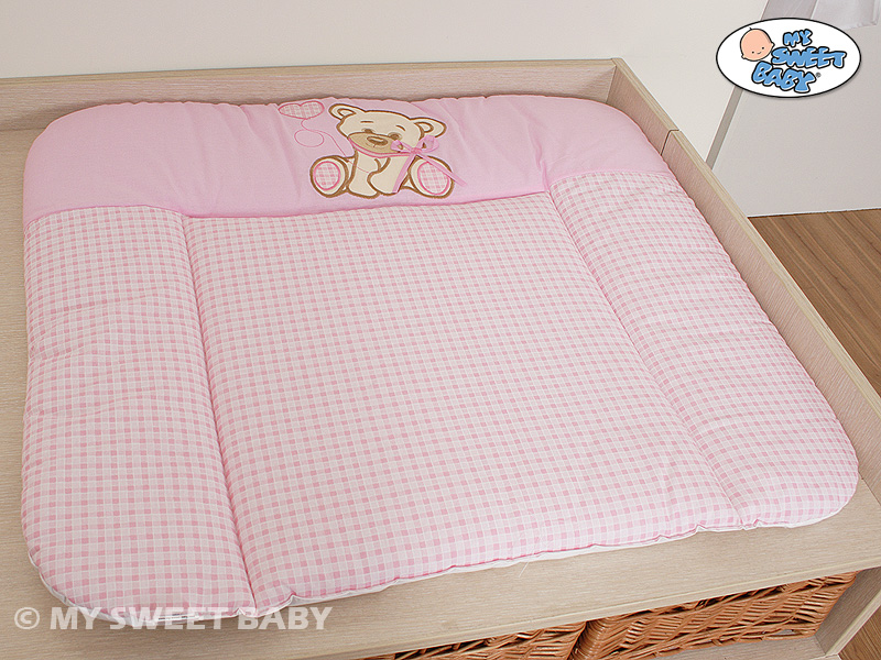 Soft Baby Changing Mat- Bear with bow pink Very soft, changing mat and through the cotton fabric much more pleasant for tender skin of the baby. The underside is foiled with water-repellent fabric.