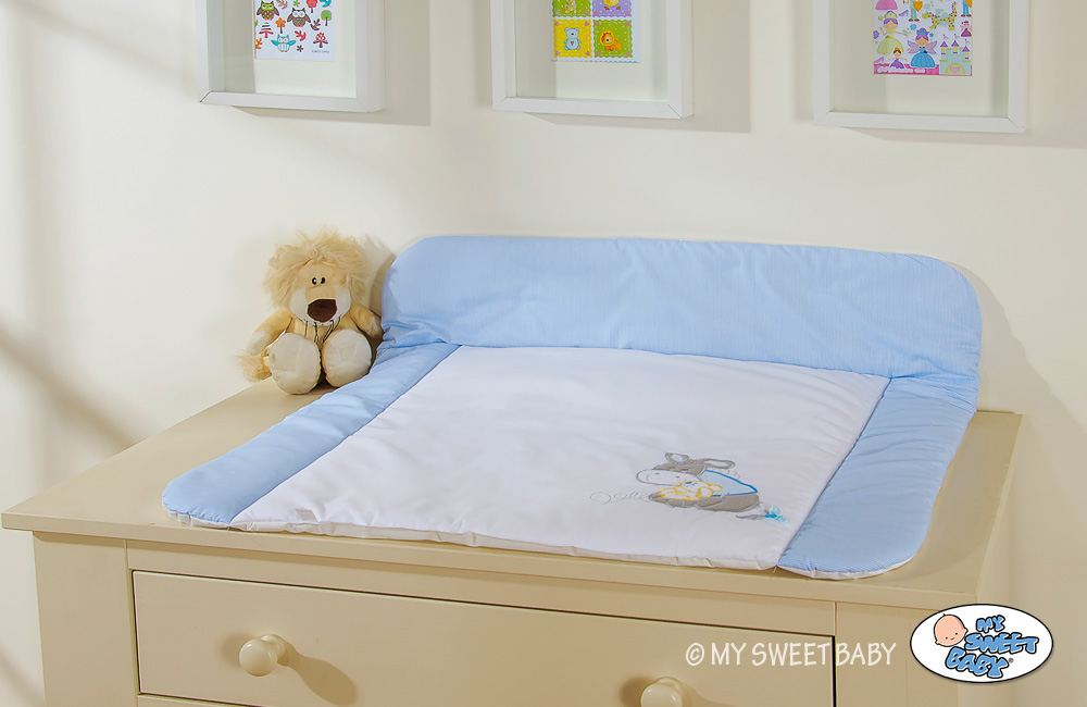 Soft Baby Changing Mat- Doneky Luca blue Very soft, changing mat and through the cotton fabric much more pleasant for tender skin of the baby. The underside is foiled with water-repellent fabric.