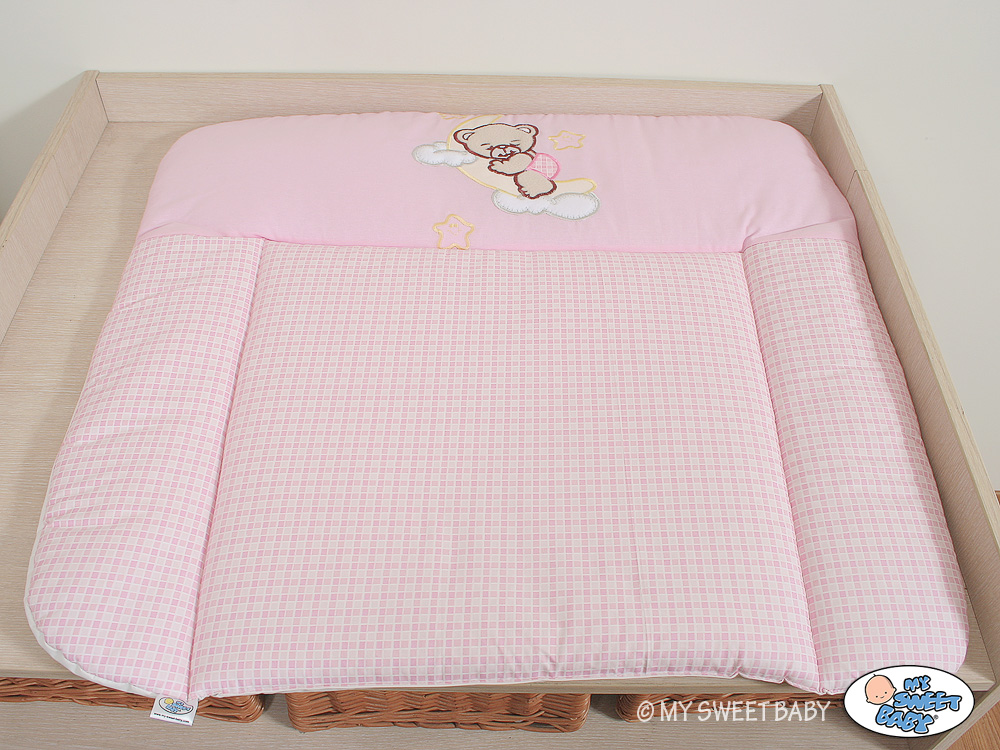 Very soft, changing mat and through the cotton fabric much more pleasant for tender skin of the baby. The underside is foiled with water-repellent fabric.