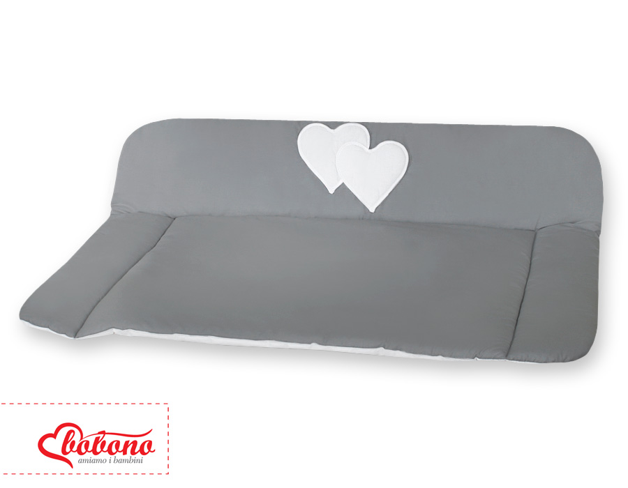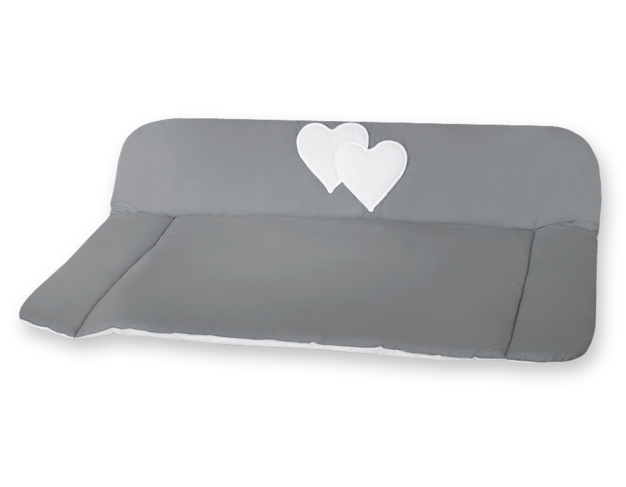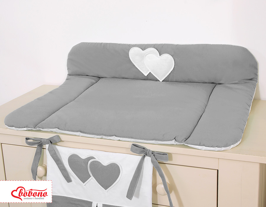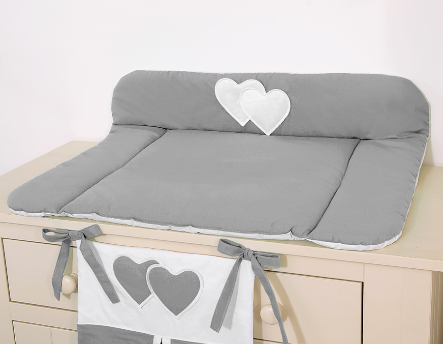 Soft Baby Changing Mat- Hanging Hearts anthracite Very soft, changing mat and through the cotton fabric much more pleasant for tender skin of the baby. The underside is foiled with water-repellent fabric.