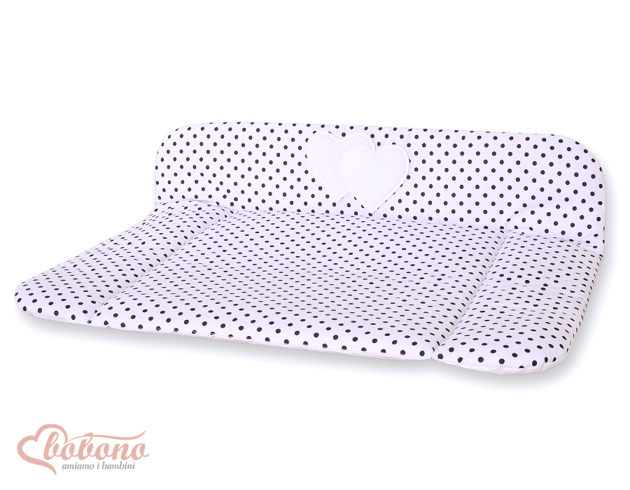 Soft Baby Changing Mat- Hanging Hearts black dots on white Very soft, changing mat and through the cotton fabric much more pleasant for tender skin of the baby. The underside is foiled with water-repellent fabric.