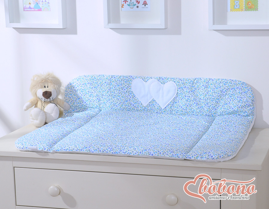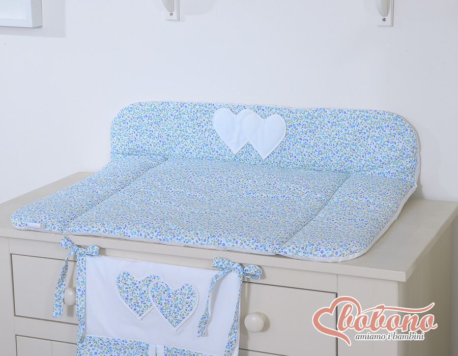 Soft Baby Changing Mat- Hanging Hearts blue flowers Very soft, changing mat and through the cotton fabric much more pleasant for tender skin of the baby. The underside is foiled with water-repellent fabric.