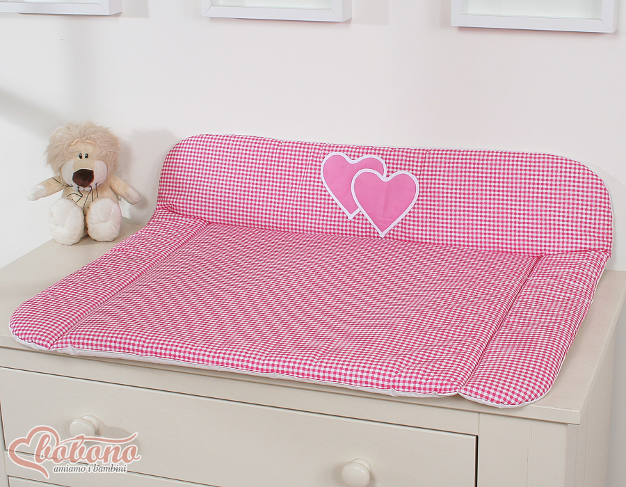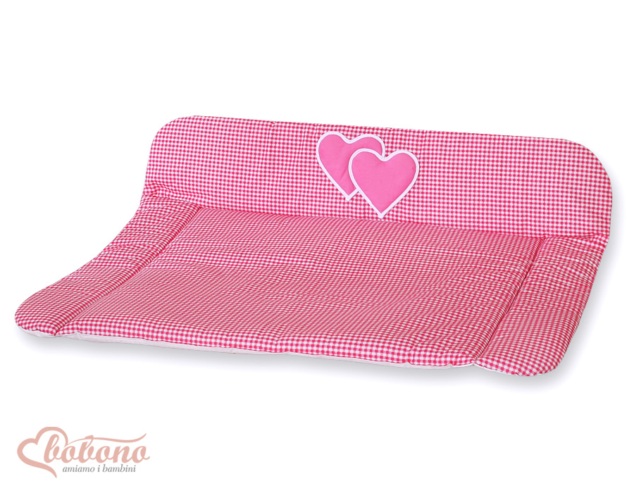 Soft Baby Changing Mat- Hanging Hearts dark pink checkered Very soft, changing mat and through the cotton fabric much more pleasant for tender skin of the baby. The underside is foiled with water-repellent fabric.