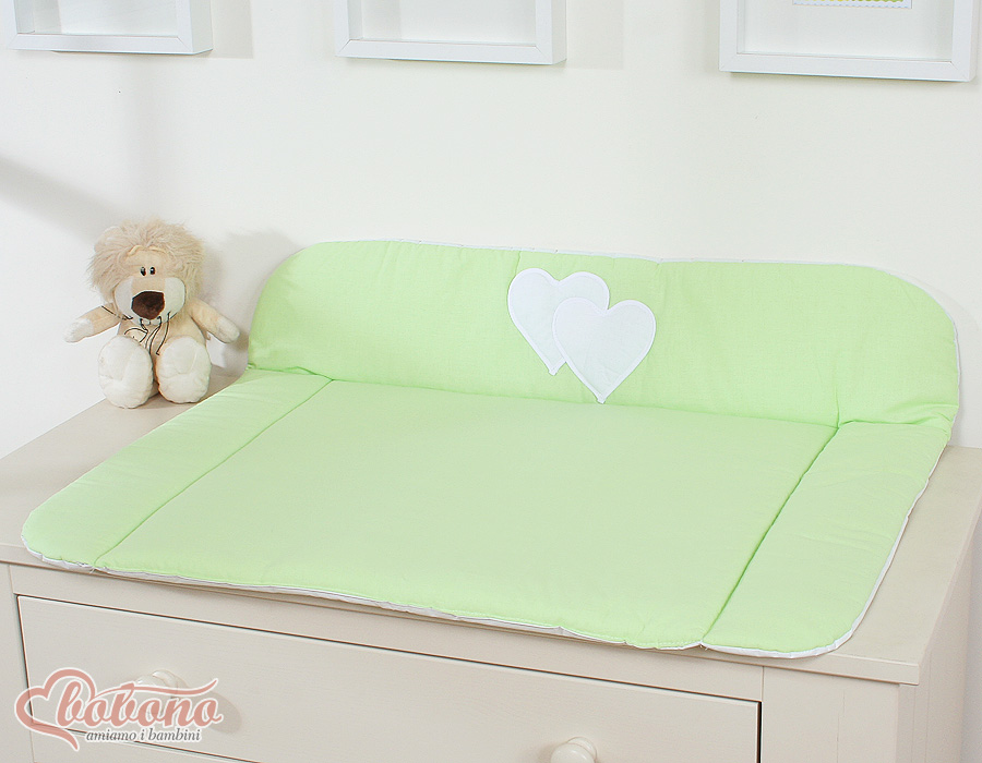 Soft Baby Changing Mat- Hanging Hearts green Very soft, changing mat and through the cotton fabric much more pleasant for tender skin of the baby. The underside is foiled with water-repellent fabric.