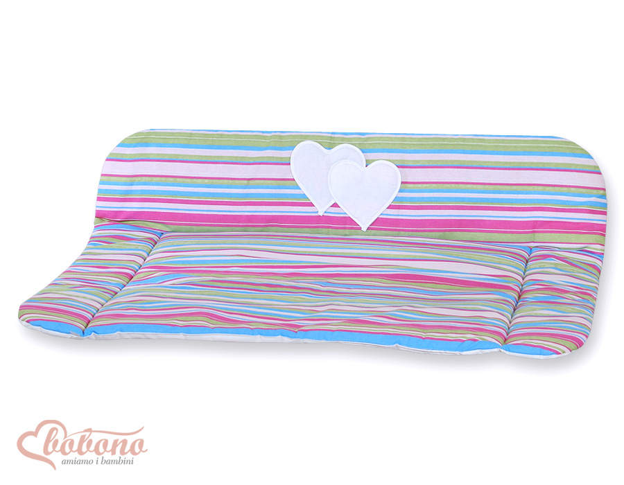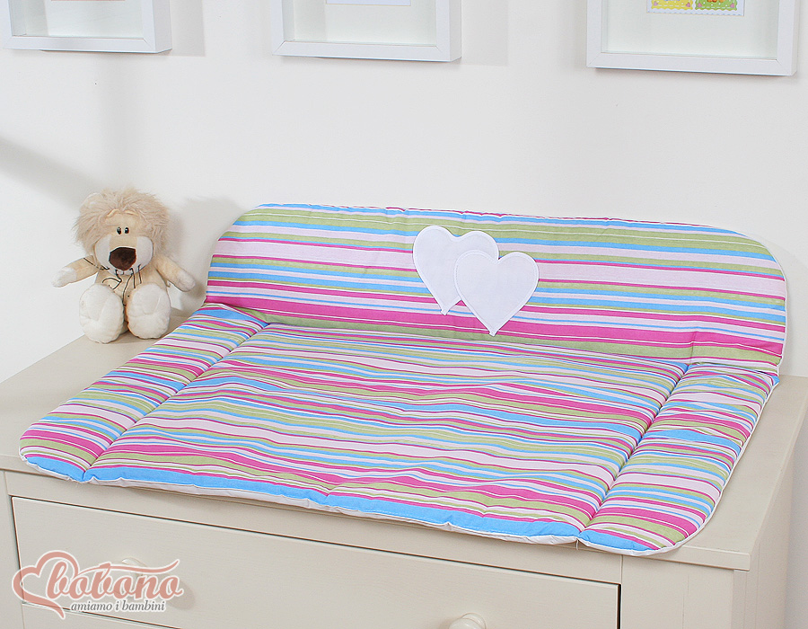 Soft Baby Changing Mat- Hanging Hearts lilac stripes Very soft, changing mat and through the cotton fabric much more pleasant for tender skin of the baby. The underside is foiled with water-repellent fabric.
