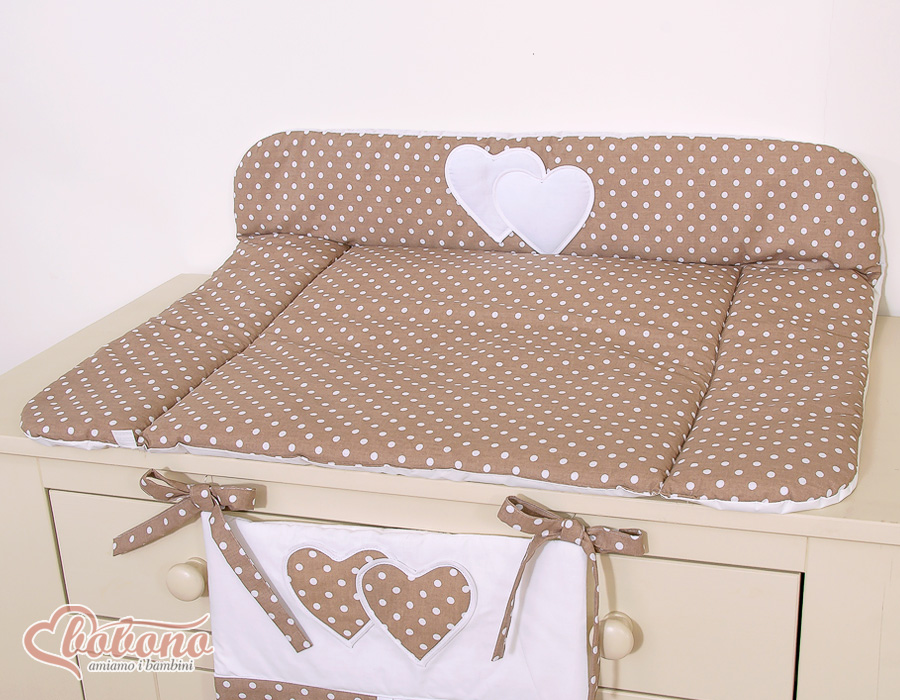 Baby Shop » Bedding sets for cots and beds » Collection HEARTS » Soft changing mat » Soft Baby Changing Mat- Hanging Hearts white dots on brown