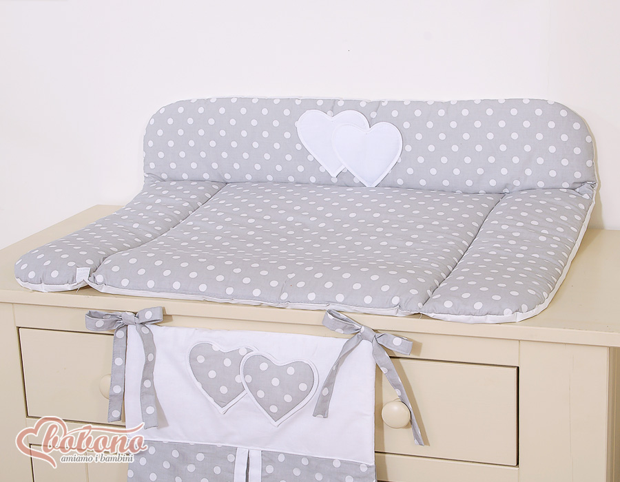 Baby Shop » Bedding sets for cots and beds » Collection HEARTS » Soft changing mat » Soft Baby Changing Mat- Hanging Hearts white dots on Gray