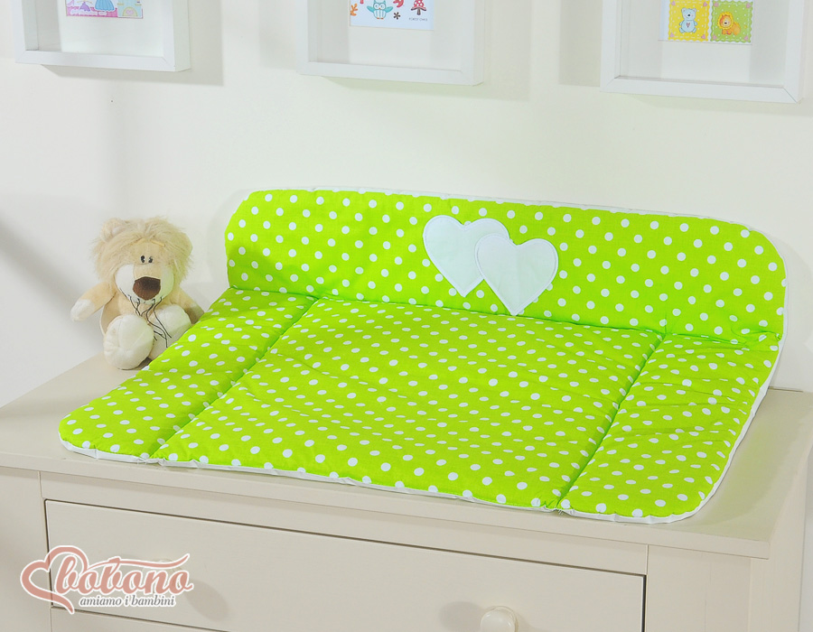 Baby Shop » Bedding sets for cots and beds » Collection HEARTS » Soft changing mat » Soft Baby Changing Mat- Hanging Hearts white dots on green