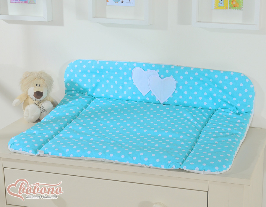 Baby Shop » Bedding sets for cots and beds » Collection HEARTS » Soft changing mat » Soft Baby Changing Mat- Hanging Hearts white dots on turquoise