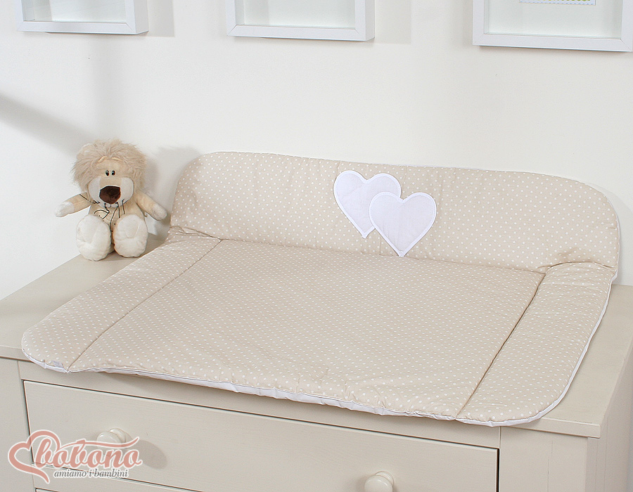 Baby Shop » Bedding sets for cots and beds » Collection HEARTS » Soft changing mat » Soft Baby Changing Mat- Hanging Hearts white polka dots on beige