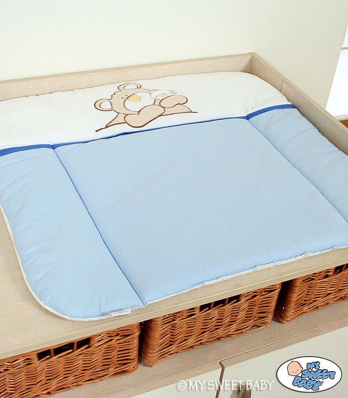 Soft Baby Changing Mat- Teddy Bear Barnaba blue Very soft, changing mat and through the cotton fabric much more pleasant for tender skin of the baby. The underside is foiled with water-repellent fabric.