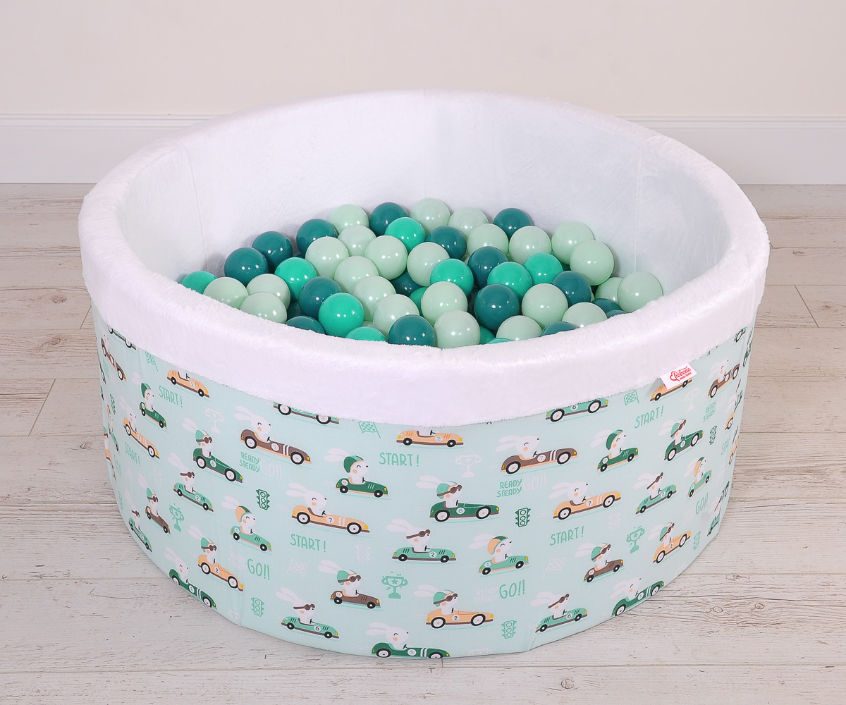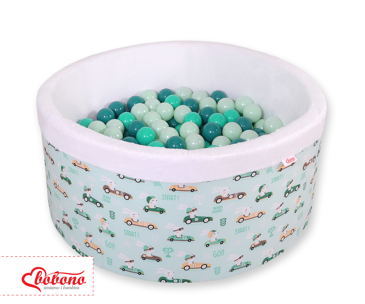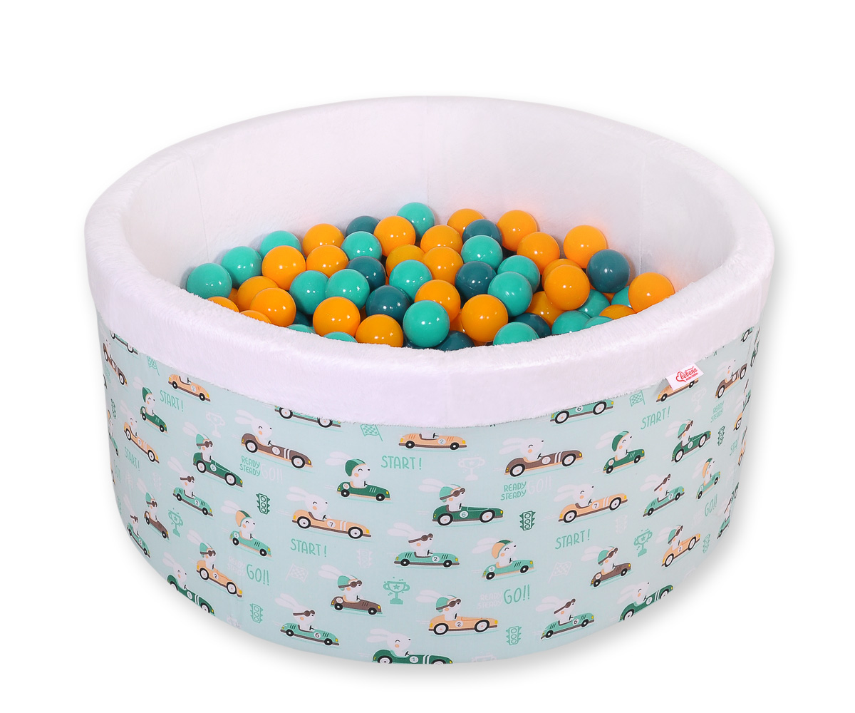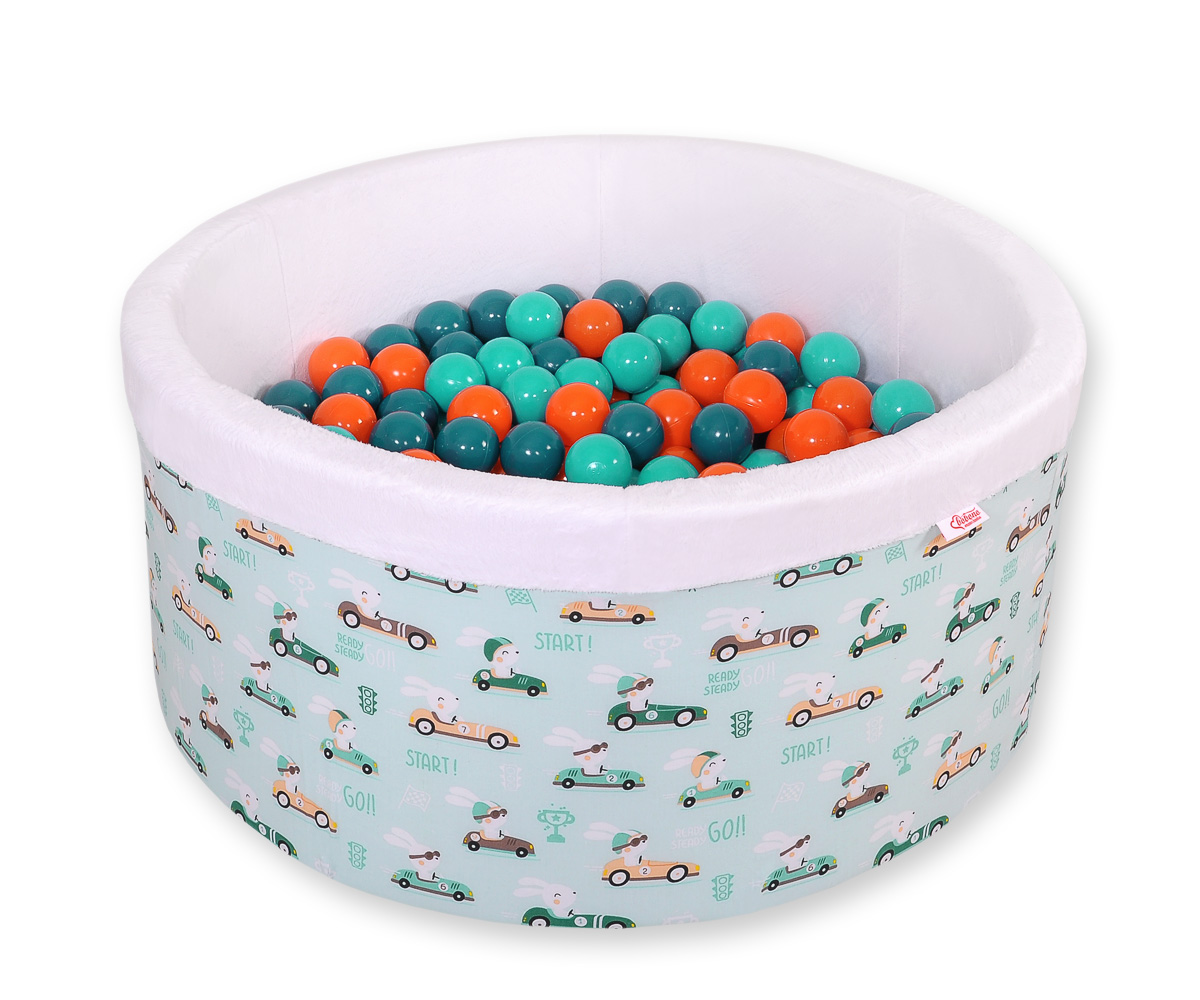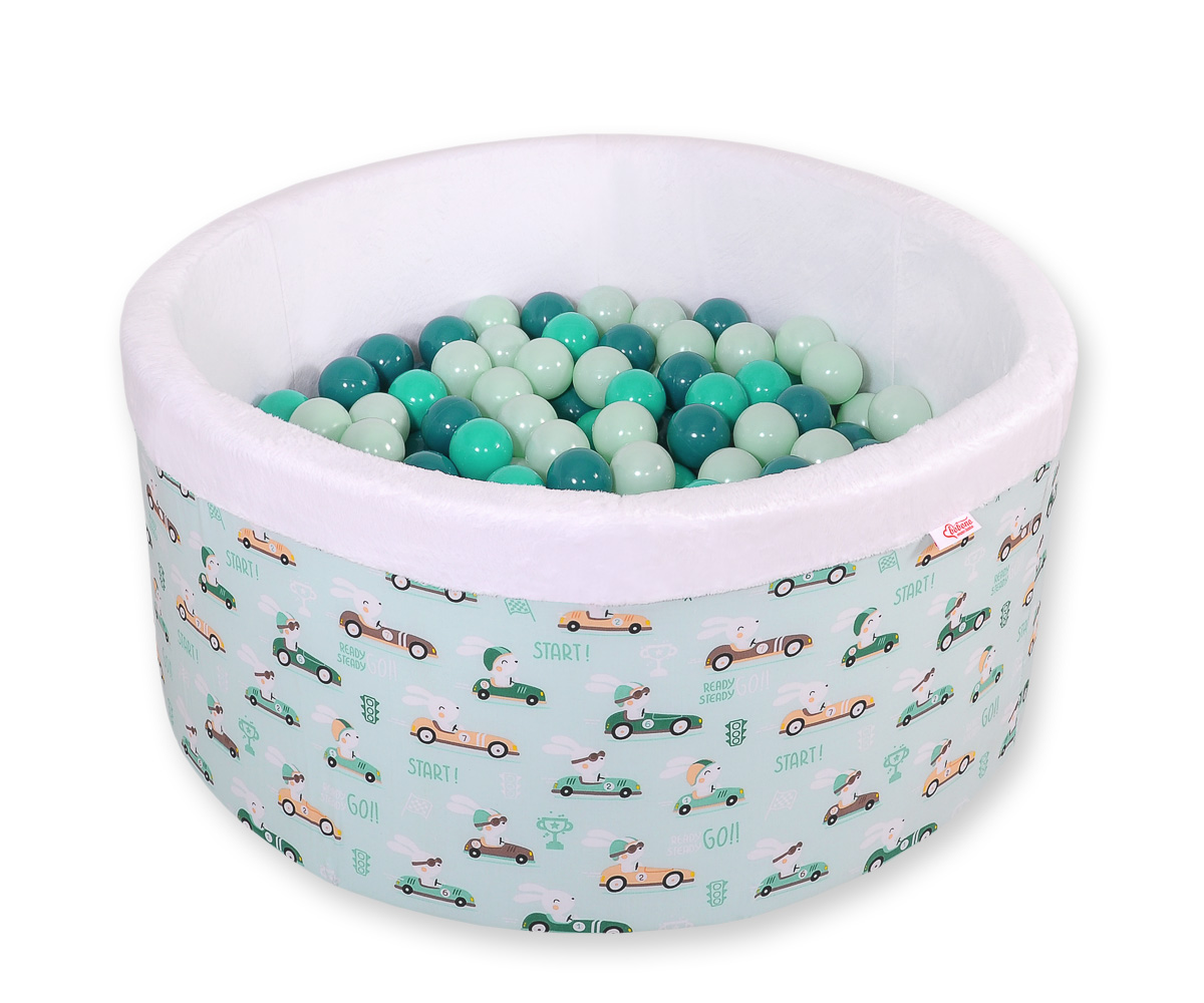 Toddlers Ball-pit Dry Pool minky with balls 200pcs - mint rabbits Ball pit with colorful balls. It is suitable for playing both at home and in the open air. It is ideal not only for fun but it provides comfort, stimulation and helps develop hand eye coordination and it is positive for the child's development.