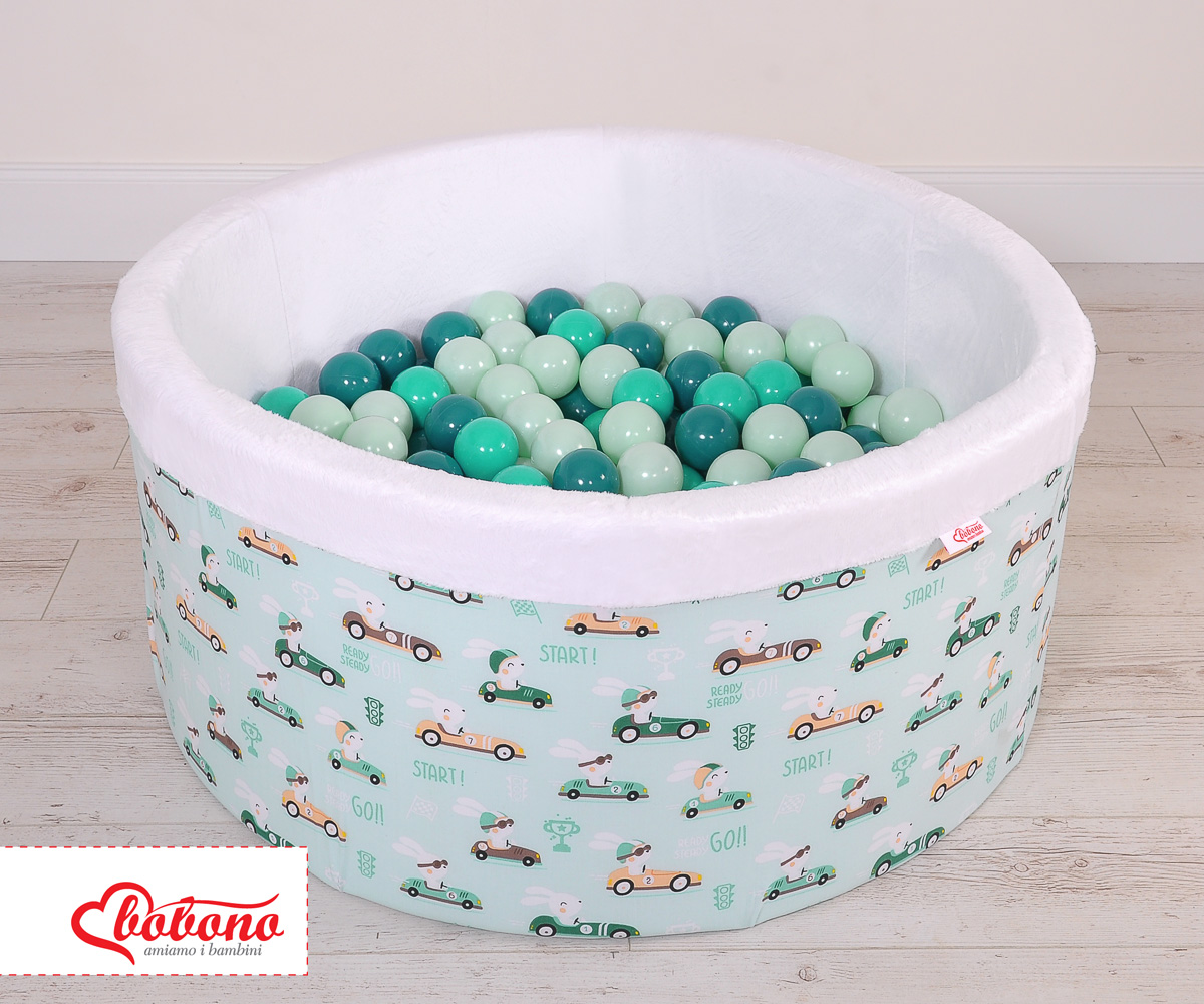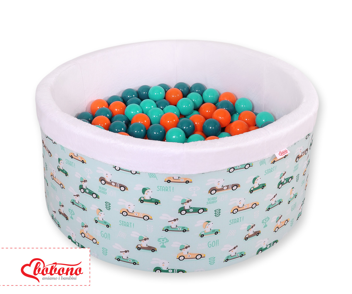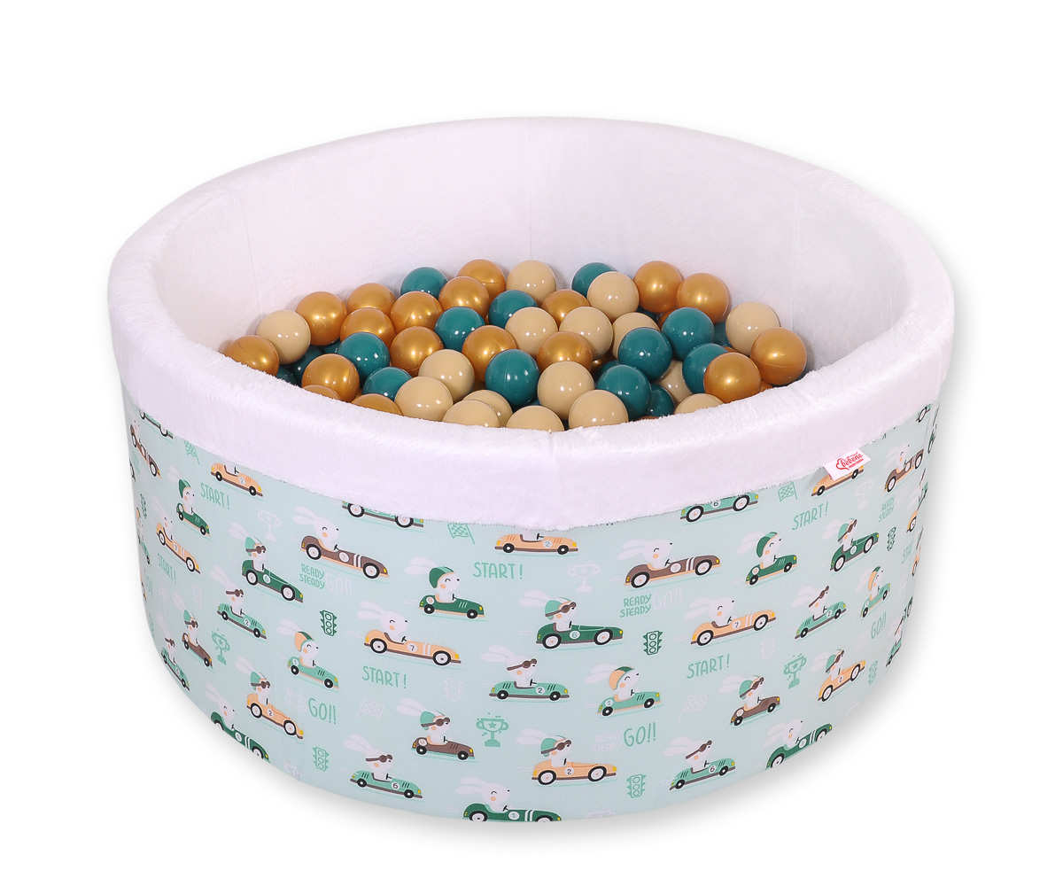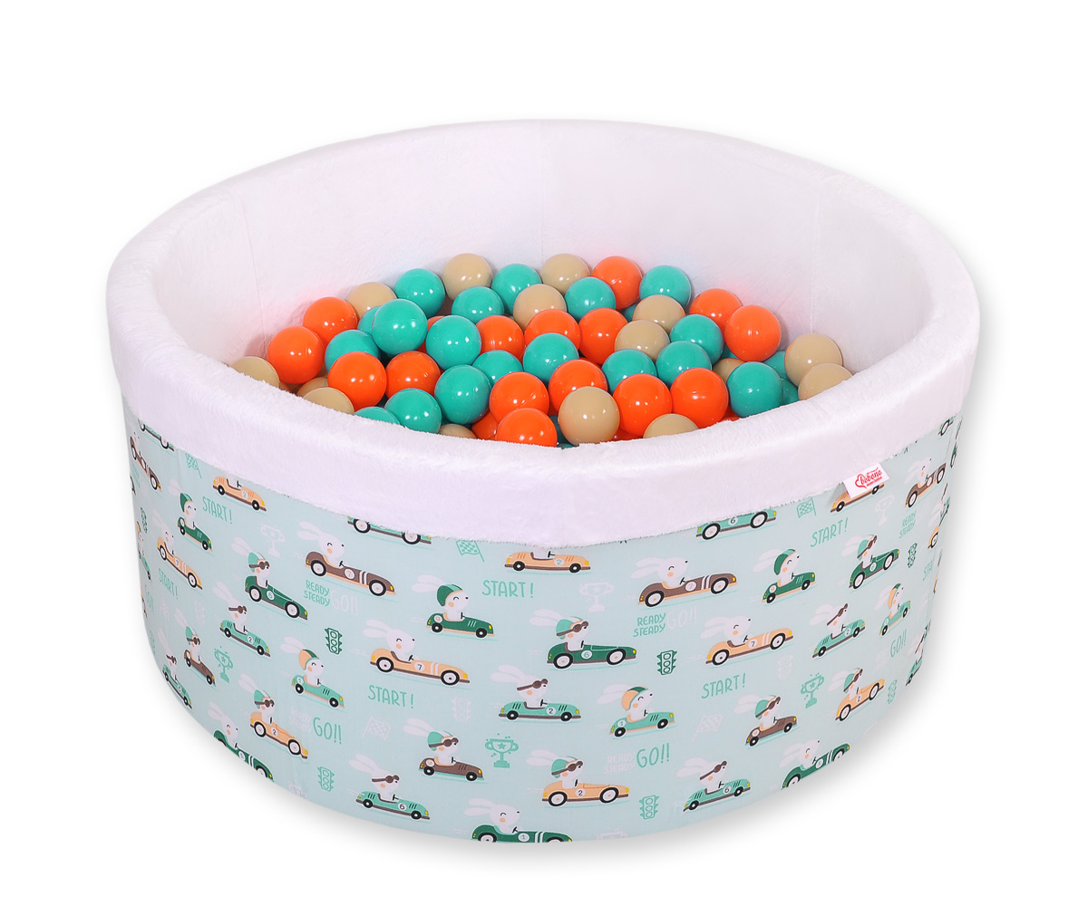 Toddlers Ball-pit Dry Pool minky with balls 200pcs - mint rabbits Ball pit with colorful balls. It is suitable for playing both at home and in the open air. It is ideal not only for fun but it provides comfort, stimulation and helps develop hand eye coordination and it is positive for the child's development.