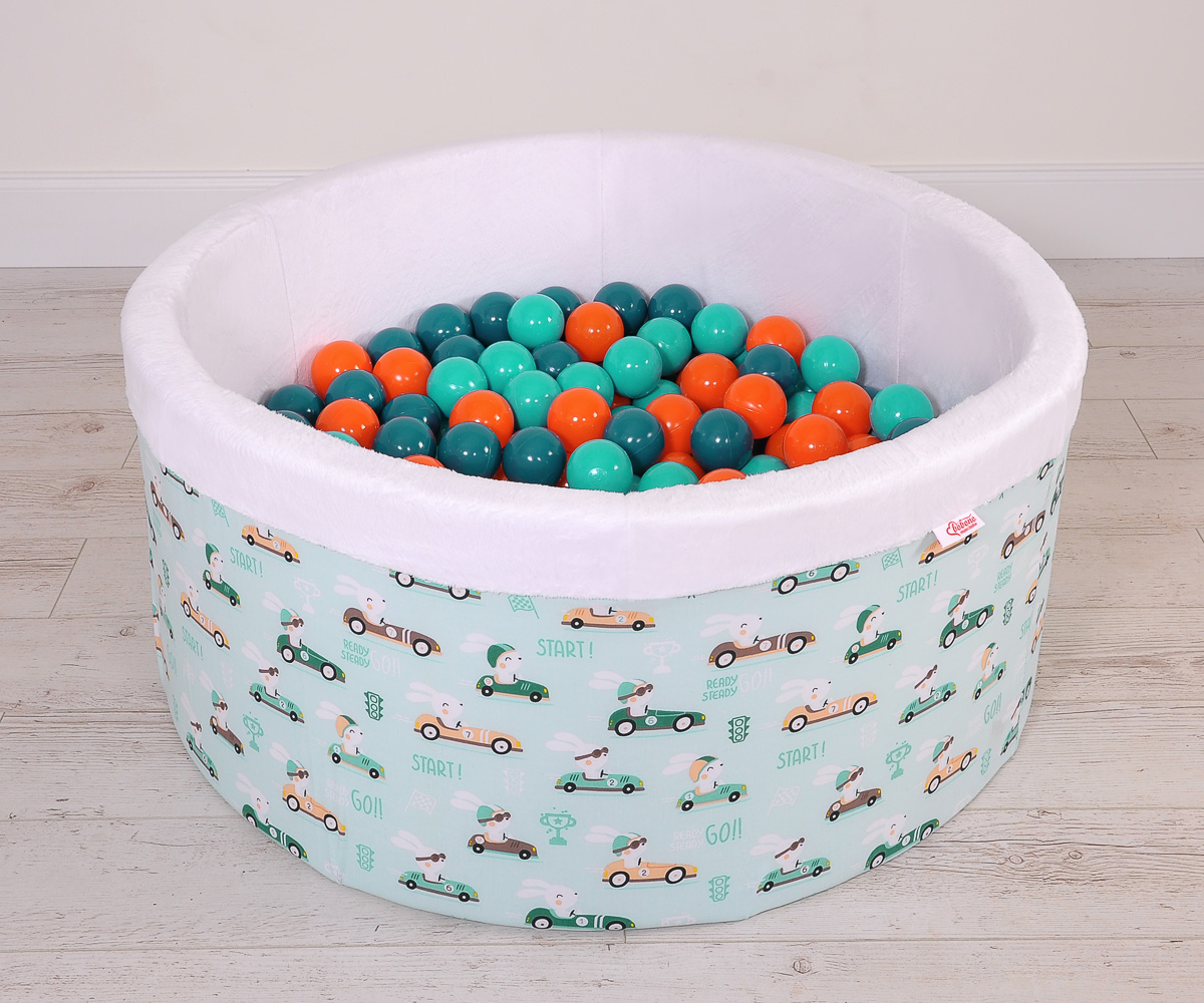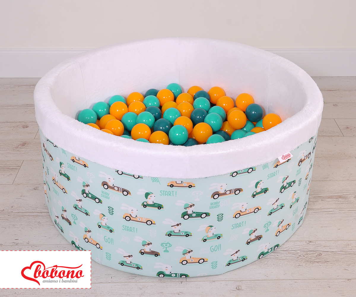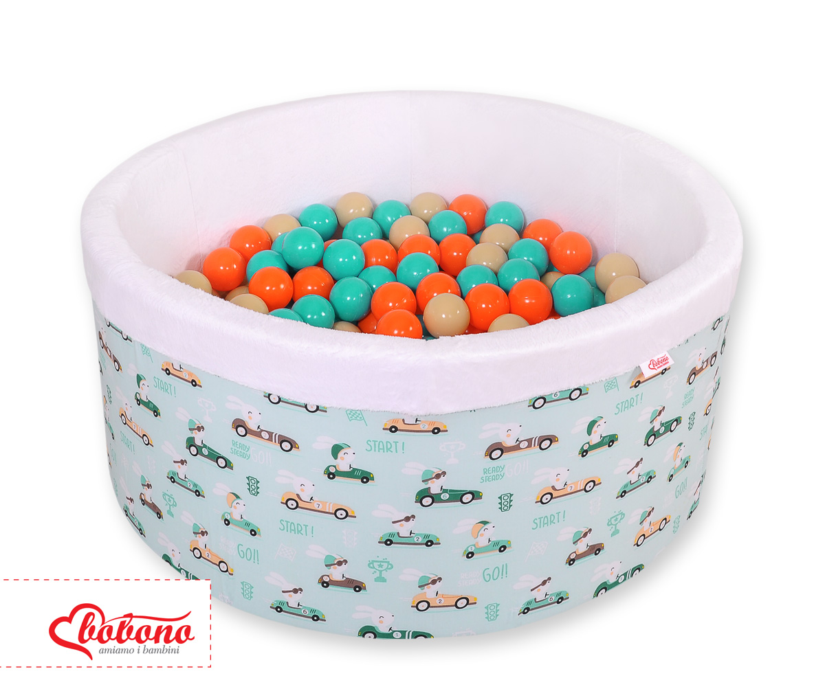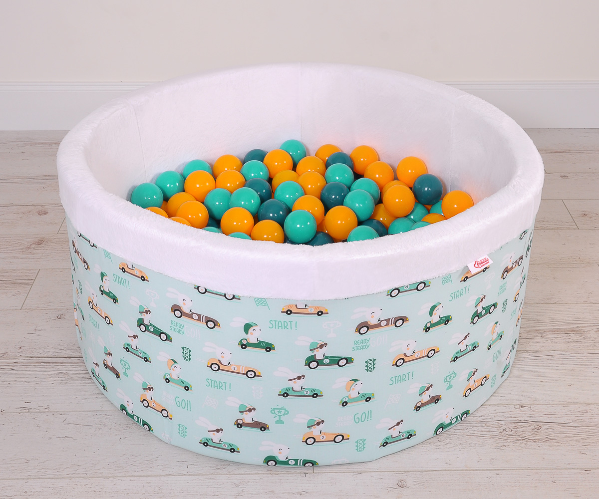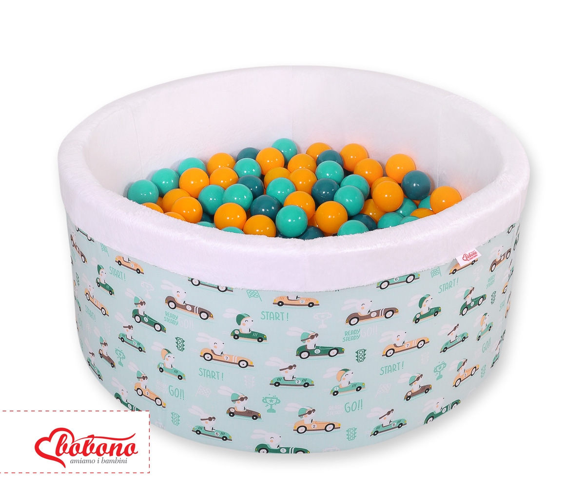Toddlers Ball-pit Dry Pool minky with balls 200pcs - mint rabbits Ball pit with colorful balls. It is suitable for playing both at home and in the open air. It is ideal not only for fun but it provides comfort, stimulation and helps develop hand eye coordination and it is positive for the child's development.