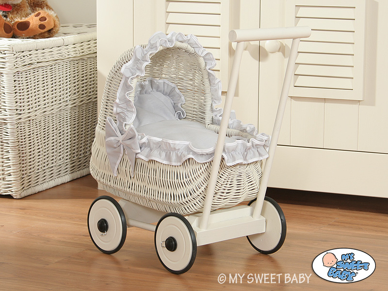 Trimming White With Bedding Gray Basket Pram Doll Wicker White